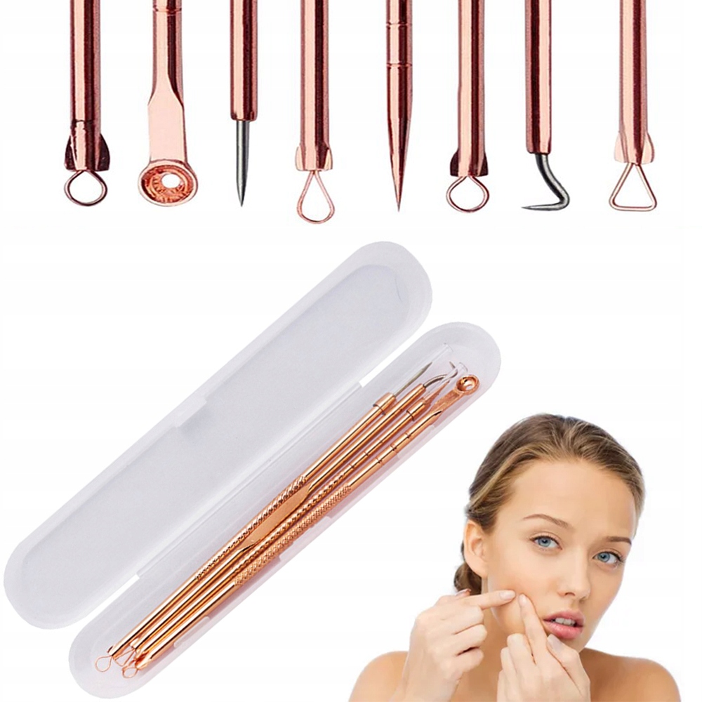 - УНІВЕРСАЛЬНИЙ - набір з 4 двосторонніх ложечок для безпечного видалення чорних крапок, вугрів і прищів. Професійні петельні ложки призначені для видалення чорних крапок та інших забруднень на обличчі. Ідеально підходить для видалення прищів навіть у важкодоступних місцях.