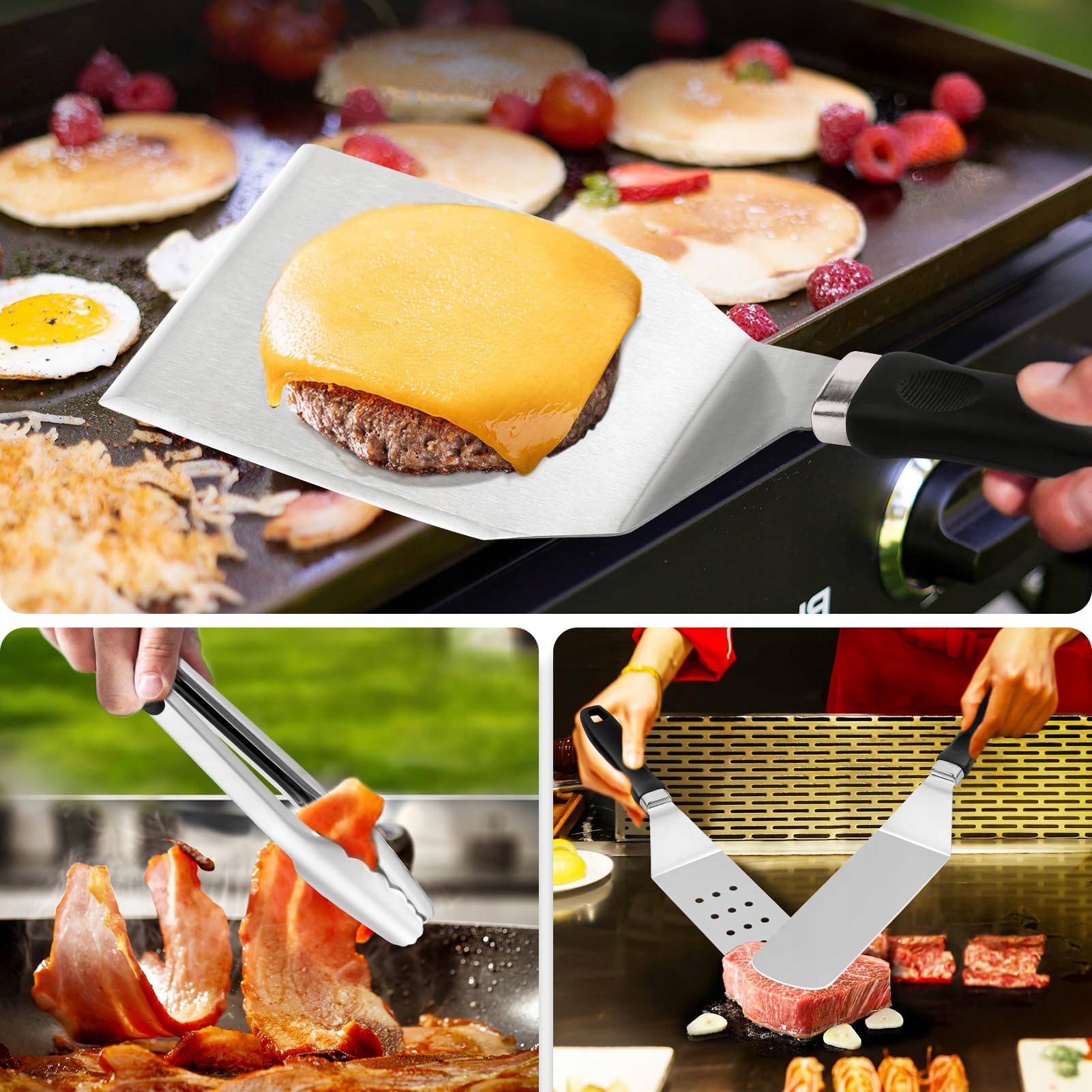--Набір лопаток для гриля з 27 предметів, аксесуари Plancha для чоловіків, набір столових приборів для барбекю з нержавіючої сталі Teppanyaki, подарунковий набір, лопатка, прес для бургерів, котлета Blackstone
