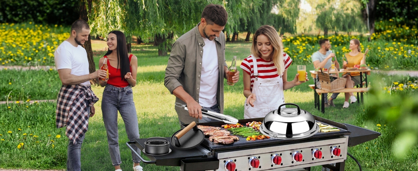 Якщо ви новачок у грилі на відкритому повітрі, різноманітність доступних аксесуарів для плоского гриля може бути надзвичайною. Від ножів до лопаток, від пляшок-дозаторів до куполів для плавлення – важко зрозуміти, що вам насправді потрібно для смаження на плоскому грилі.
