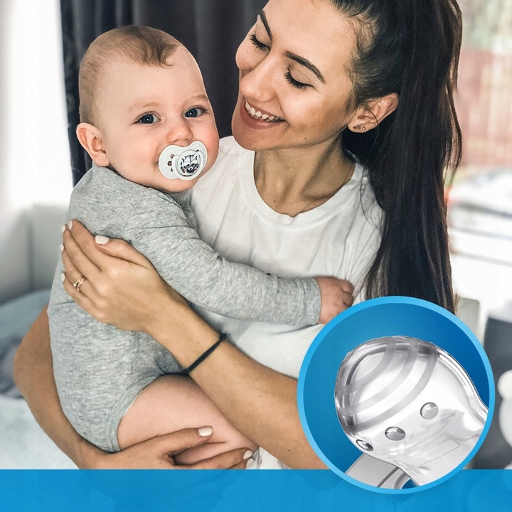 Профільований диск, що дозволяє дитині вільно дихати через ніс, а отвори запобігають драту шкірі.