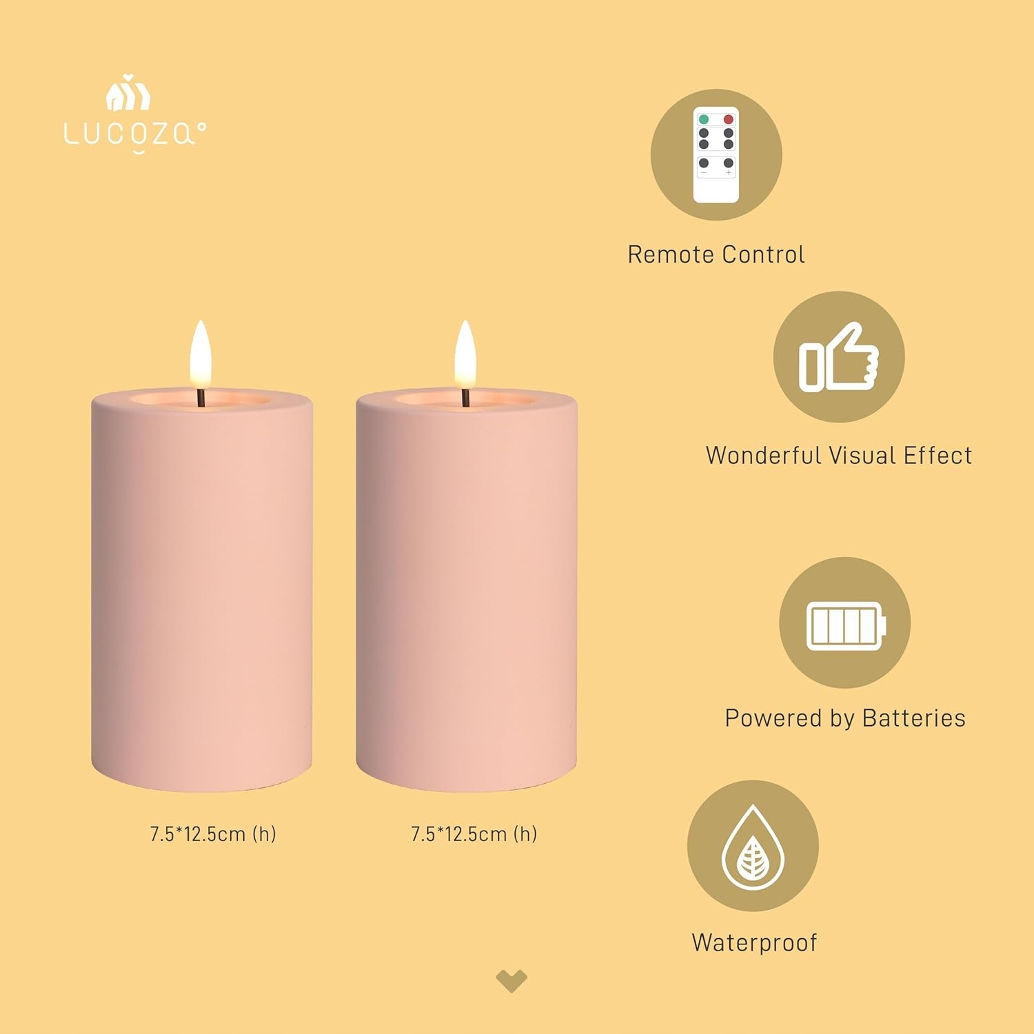 Набір LUCOZA з 2 світлодіодних свічок - рожеві, водостійкі свічки для будь-якого інтер'єру