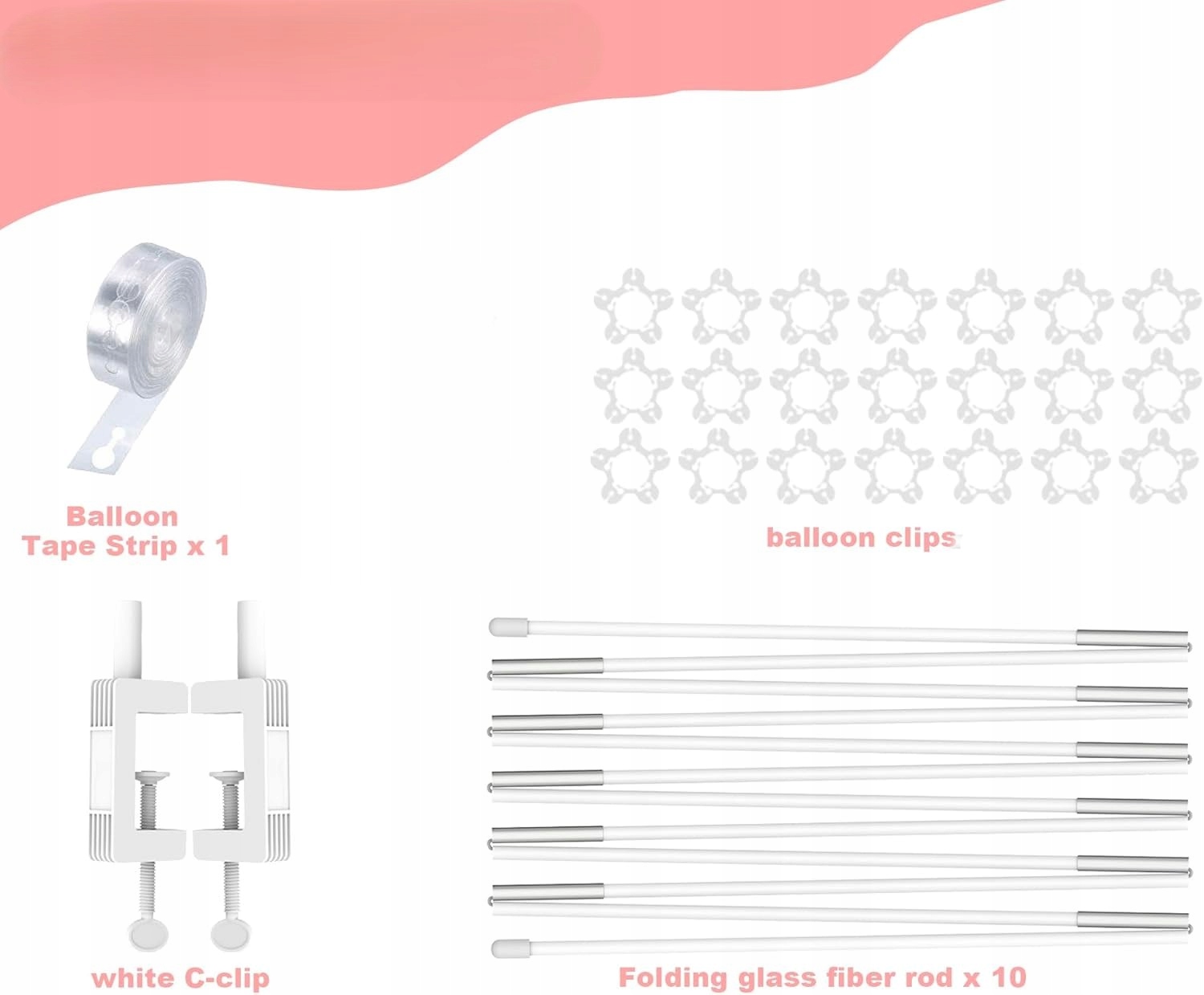 ✅ Комплект арки для повітряних кульок: набір включає 2 міцні C-подібні кронштейни та 10 гнучких скловолоконних стовпчиків із міцною гаковою лінією. Кожен стовп має 38 см. Загальна довжина стовпів 3,65 м, тож для повітряних кульок можна побудувати арку 3,65 м!