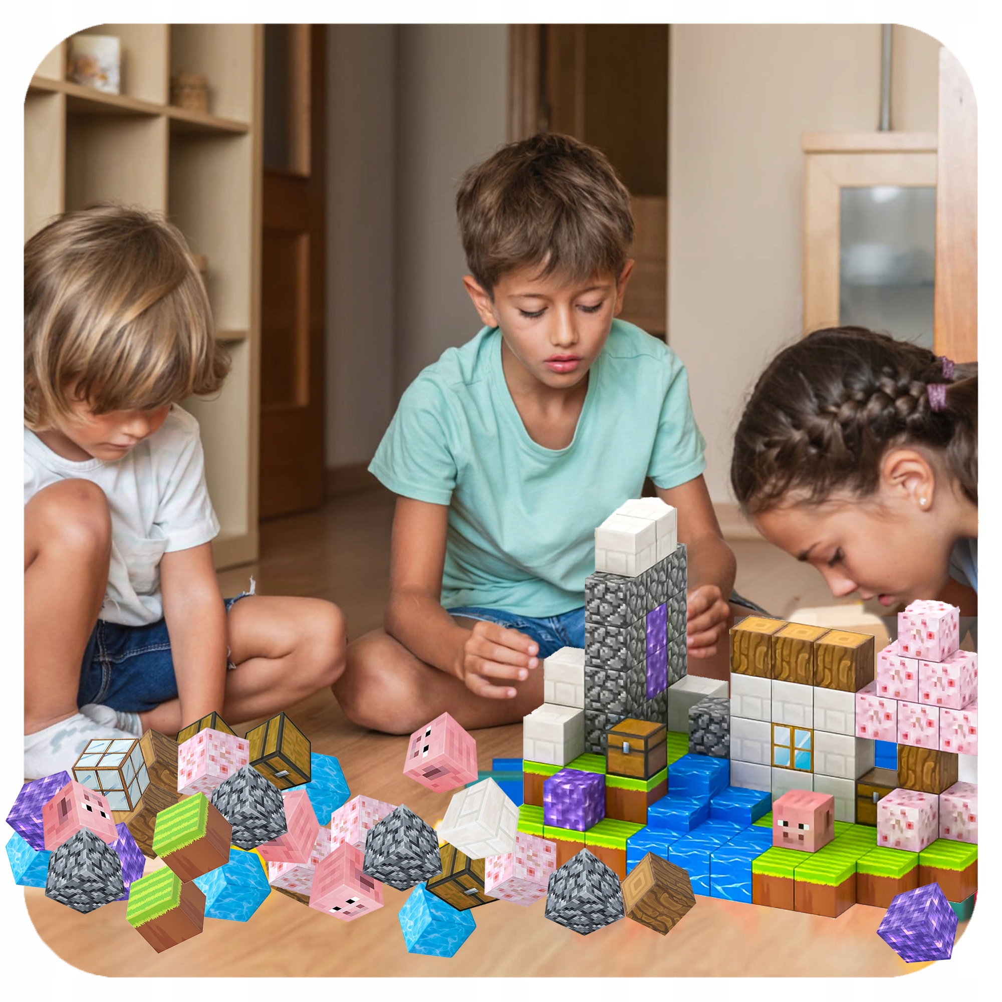 Діти можуть створювати власні історії та світи – будувати будинки, водоспади, ферми чи портали до чарівних країн!