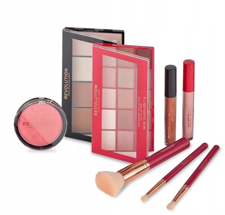 RELOADED COLLECTION від MAKEUP REVOLUTION. Набір косметики та засобів для макіяжу. Він містить необхідні продукти для повного макіяжу обличчя: палетку тіней для повік, палетку для контурування обличчя, два блиски для губ, запечені рум’яна, пензлики для нанесення та розтушовування тіней, хайлайтер і пензлик для контурування. Все було упаковано в акуратну та елегантну паперову коробку, тому набір легко можна використовувати як подарунок близькій людині на будь-яке свято.