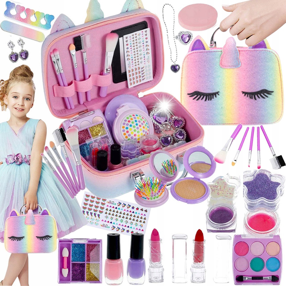- Одним із ключових аспектів цього набору є безпека. Вся косметика, що входить в набір, підходить для використання дітьми. Вони нетоксичні, легко миються і не викликають роздратування. Діти можуть вільно експериментувати, а батькам не потрібно турбуватися про можливі алергічні реакції.