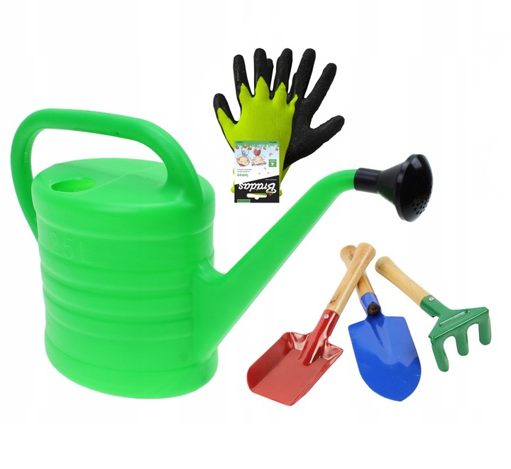 Цього разу я пропоную МАЛЕНЬКИЙ НАБІР ДЛЯ САДІВНИЦІ: РУКАВИЧКИ розмір 3 + лійка 2,5 л + граблі, 2 лопати