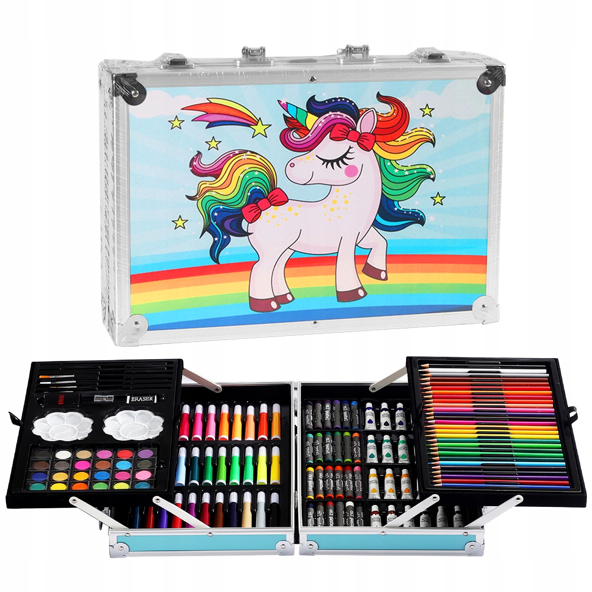Завдяки великій кількості відділень у дитини є всі аксесуари, необхідні для виконання роботи завжди. Невеликі розміри та зручна ручка дозволять вам взяти з собою художній набір для класів мистецтв для школи чи дитячого садка, на відкритому повітрі або в поїздці. Після складання ви можете покласти валізу в шафу або на полицю. Завдяки гладким країм, його можна розмістити або поставити де завгодно. Крейонів, фарби та маркери забезпечать довгі години веселощів і дозволять розвивати крила творчої уяви.