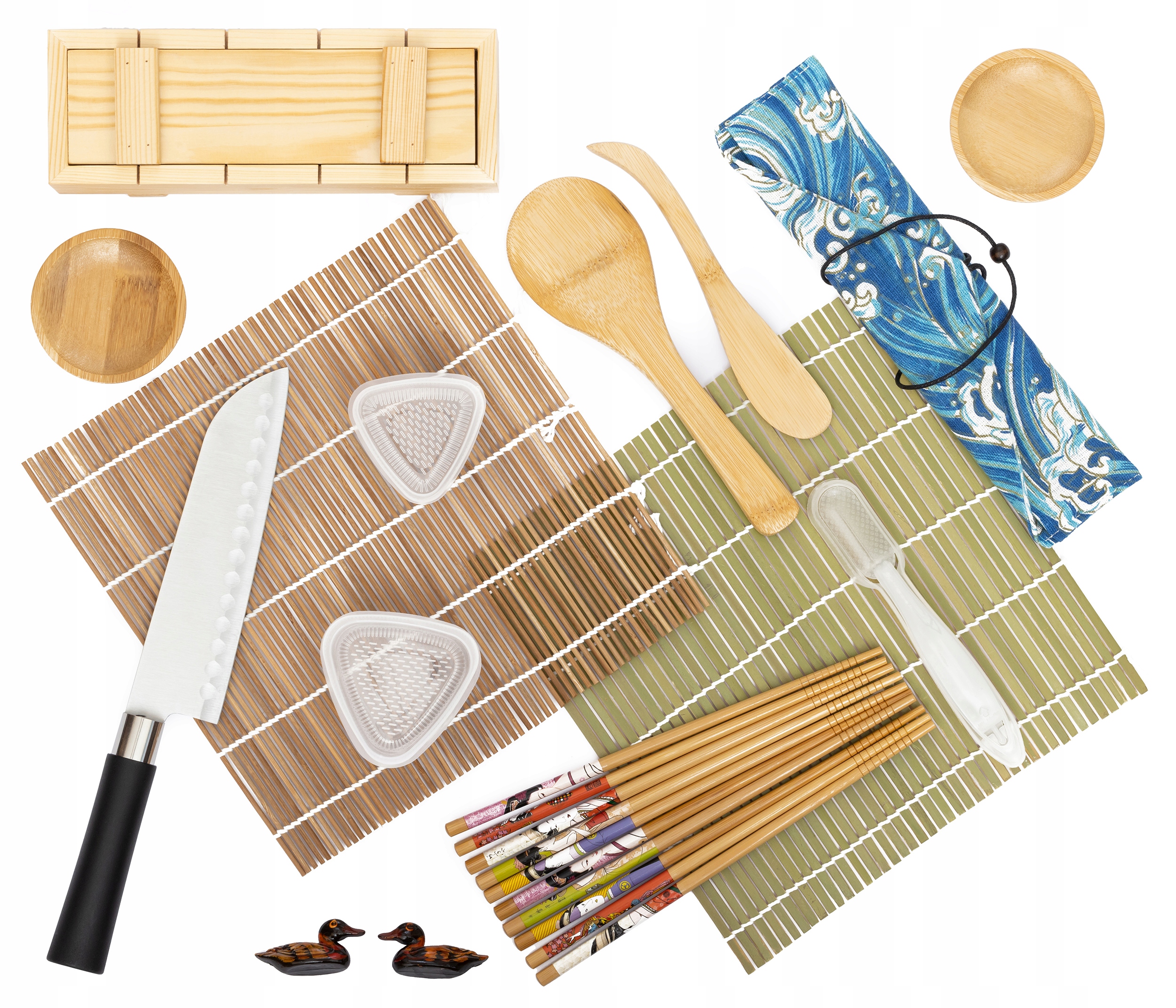 Кожен продукт у наборі для приготування суші виготовлено з натурального бамбукового матеріалу найвищої якості. У набір входять 2 бамбукові килимки.