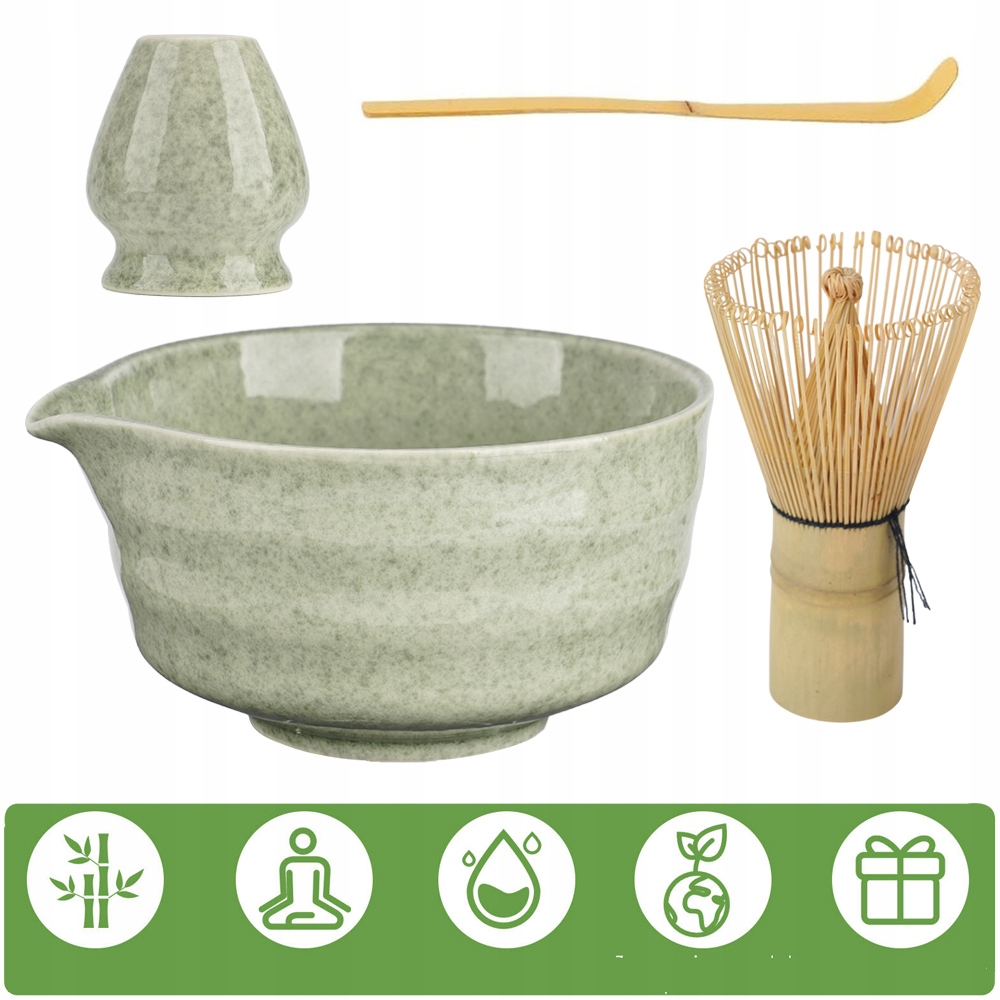 Цей мітла матча є важливим інструментом для приготування матчі, виготовленого вручну з цільного шматка бамбука, який є здоровим, екологічно чистим, нетоксичним і довговічним. Чаша для матчі виготовлена з кераміки, свіжий зелений колір змушує людей почуватися спокійними та щасливими