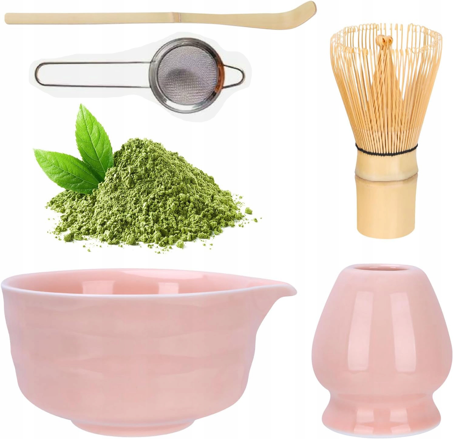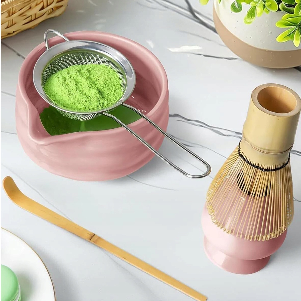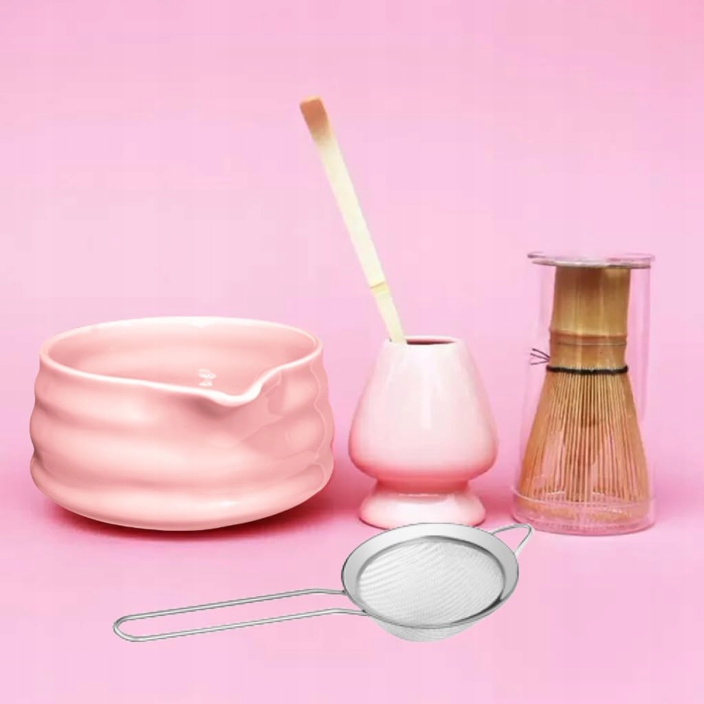 🎍 Набір для чаю Матча з 5 предметів, Набір віночків для матчі, Віночок для матчі, Чаша для матчі, Ситечко для матчі, Часен і ложка для Матчі, Аксесуари для чайної церемонії Матча (5, рожевий)