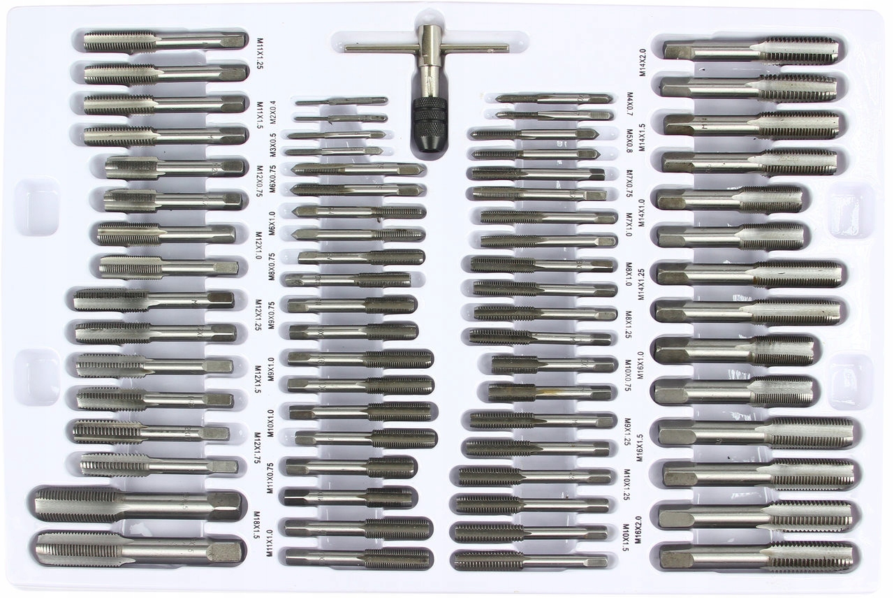 - 35 конічних мітчиків, 35 пробкових мітчиків і 35 плашок розміром: