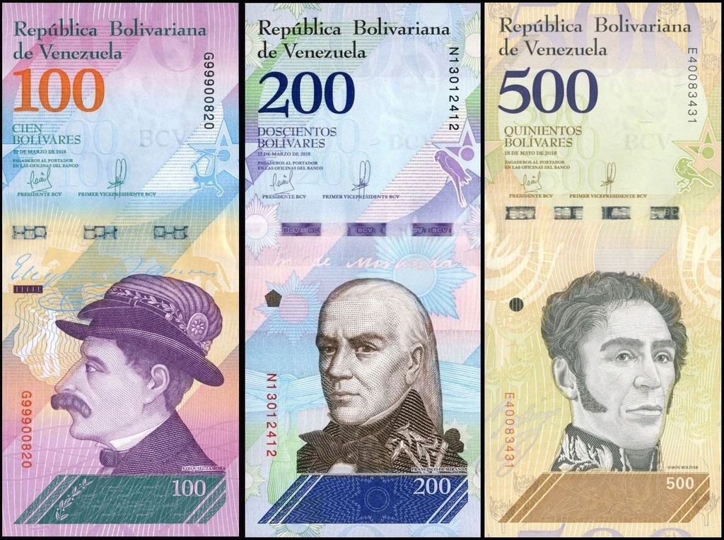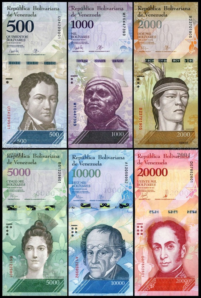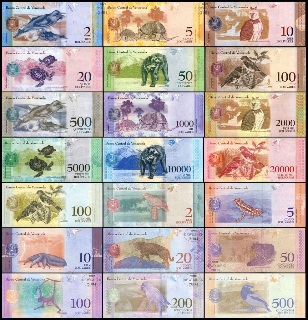 від 2 Bolivares Soberano до 500 Bolivares Soberano - P 101-108