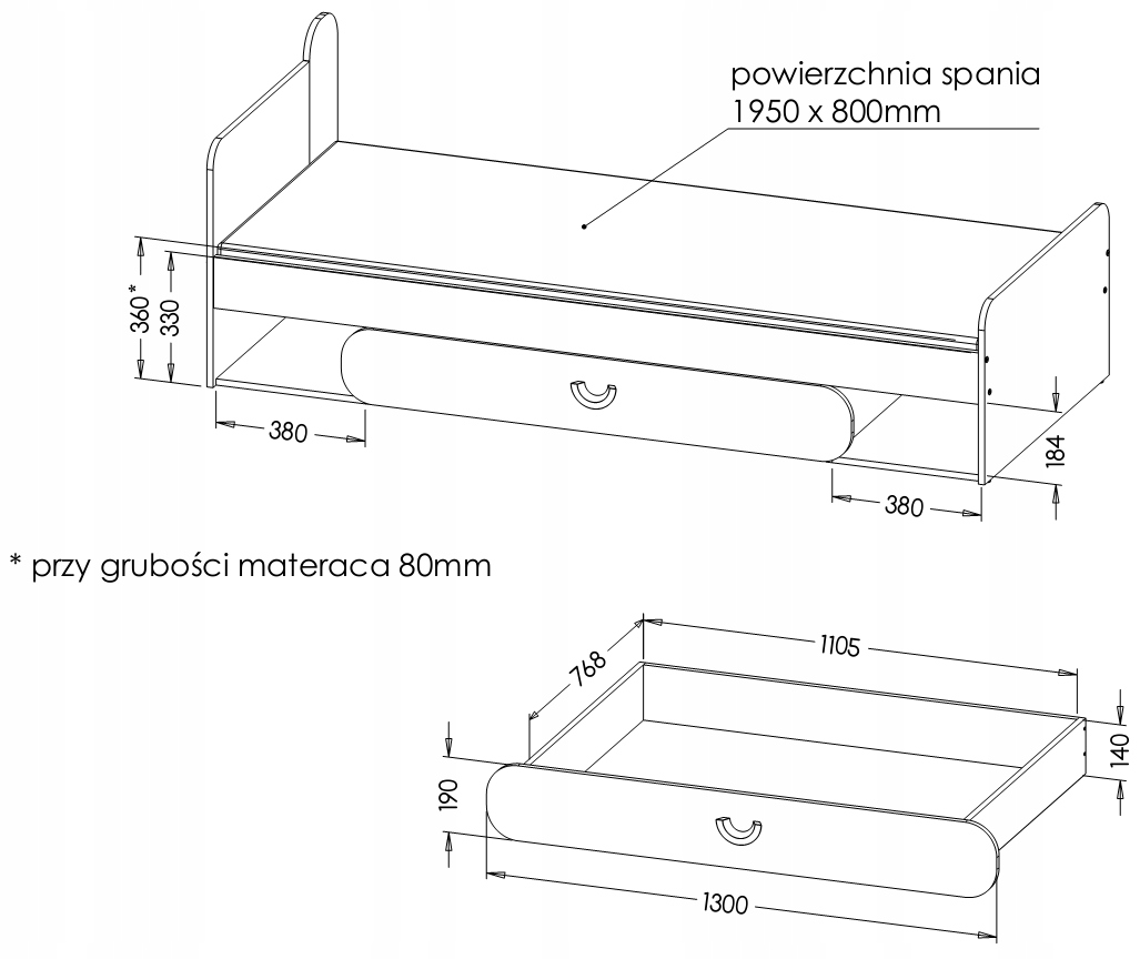 - Carini_Ca11 – Ліжко – 80 x 195 84 x 198 x 70