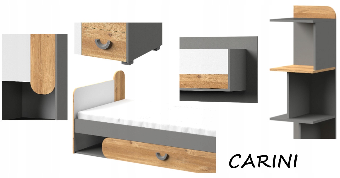 Carini Z3 - набір меблів для дитячої та підліткової кімнати, ліжко, стелаж, письмовий стіл, шафа кутова, тумбочка