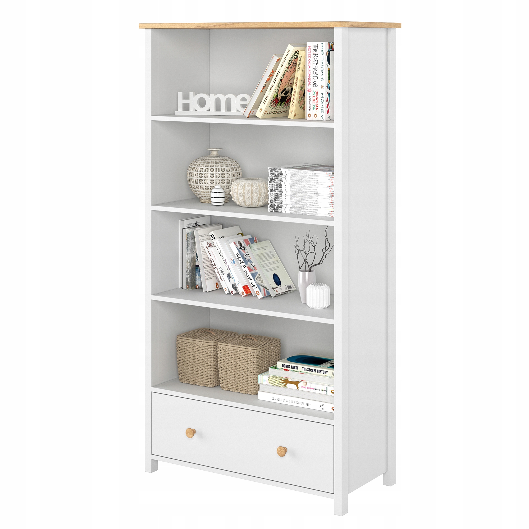 Чарівна книжкова шафа для книг, документів і декору . Книжкова шафа оснащена глибокими полицями та легкодоступним містким шухлядою. Меблі виготовлені з міцної ламінованої дошки з оздобленням міцним ABS край. Пластикові ручки.