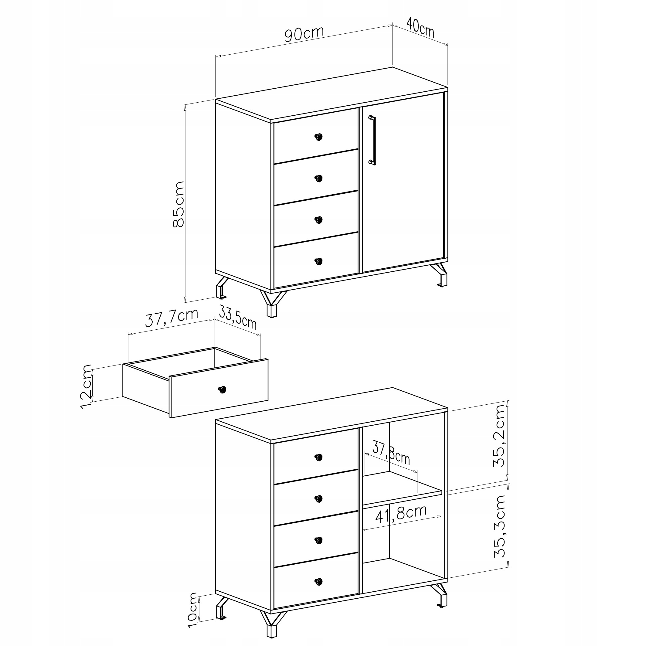 - Bergen BE7 – комод 90, 4 ящики - 90 x 85 x 40