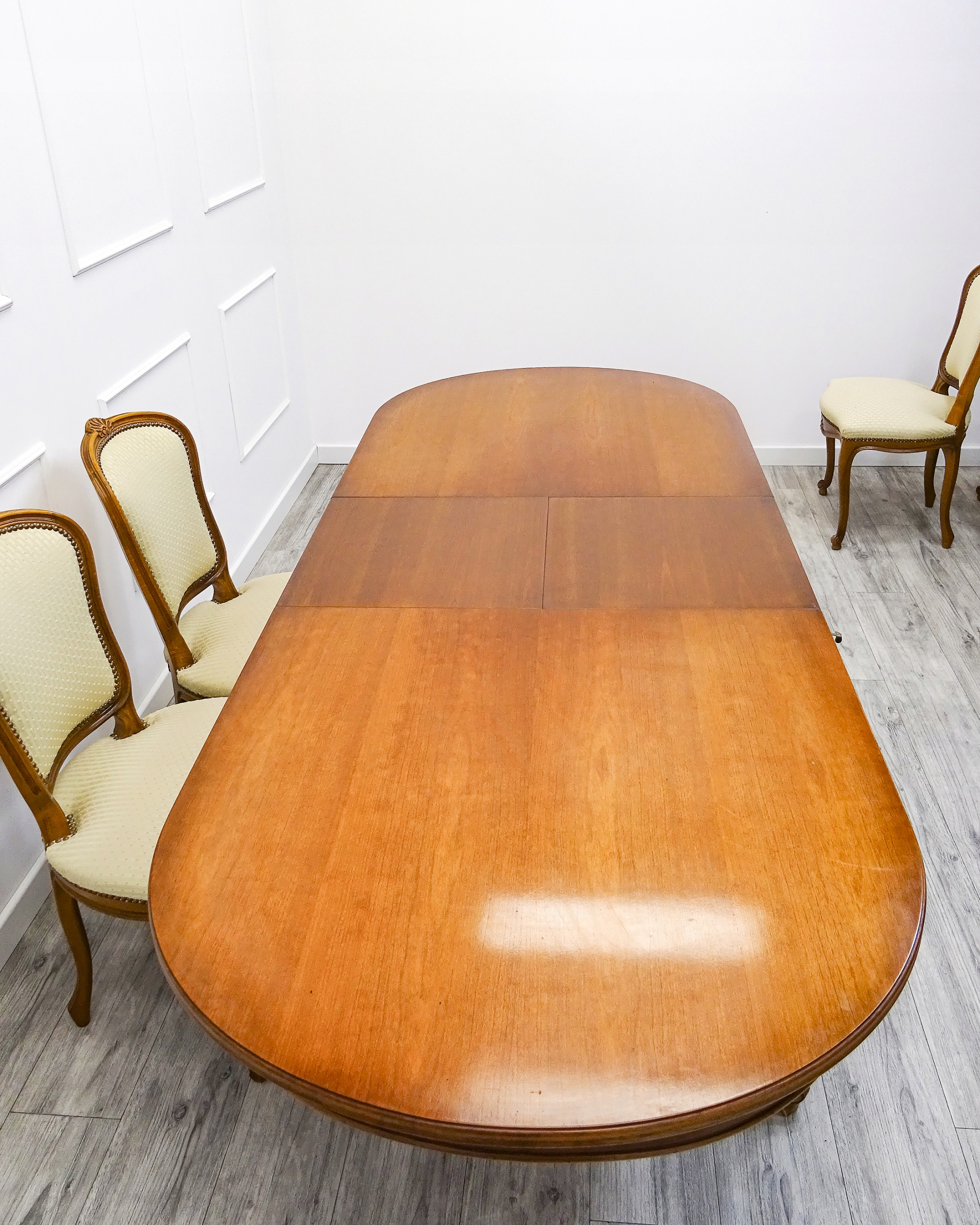 Ми представляємо набір з 6 красивих, французьких стільців, оббиткових з легким жаккардом з дерев’яною таблицею з можливістю розповсюдження (вставки). ✔ Закріплений