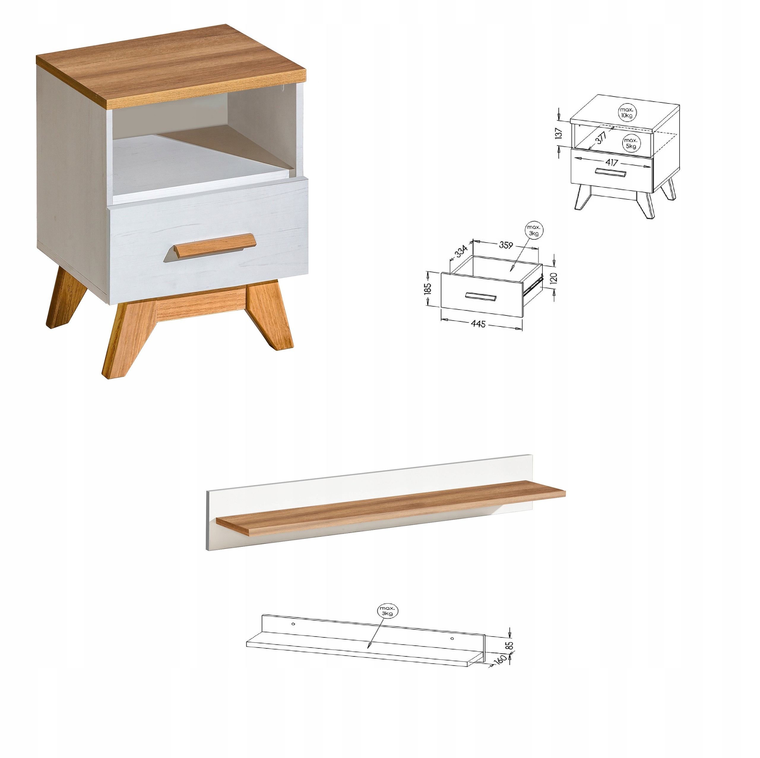 - Sven SV15 - 45 x 50,2 x 40 - стіл, тумбочка з ящиком і полиця