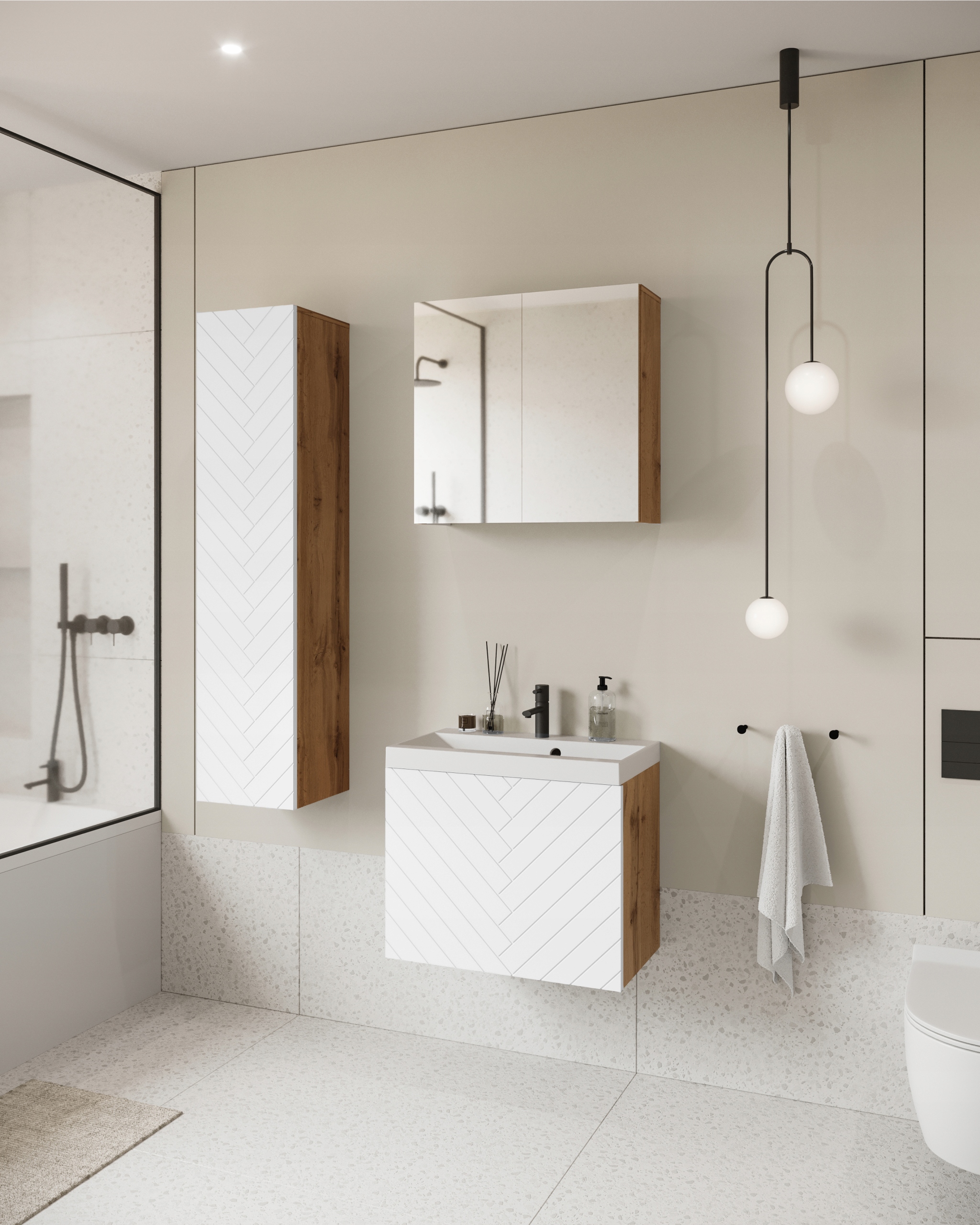 1. Чому ви повинні вибрати ці меблі для ванної кімнати? Зроблені з постійної ламінованої пластини товщиною 15 мм, у них є фронти MDF, що полегшує збереження чистоти. Безпечна доставка захищає меблі від пошкодження під час транспорту. Чи є можливість адаптувати меблі для ванної кімнати до конкретних розмірів? Для отримання інформації про тему наявності варіантів адаптації до індивідуальних потреб. Які переваги вибору раковини з доломітового конгломерату? Це гарантія, що ваша ванна кімната завжди буде виглядати сліпучою.