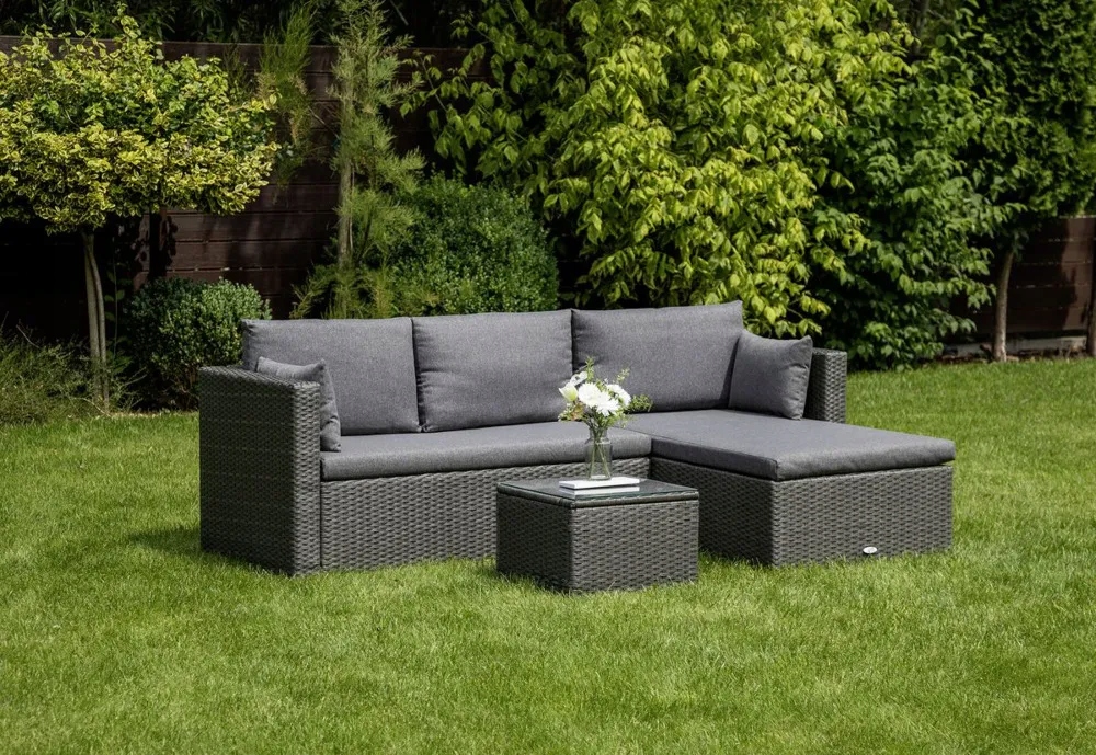 Набір включає диван на 2 людини, шезлонг журнального столика. Рама виготовлена з міцної та твердої сталі. Конструкція дозволяє вільно влаштувати форму кута (ліворуч -рука або праворуч). Для закінчення використовувались високоякісні технологічні коси. Зручні подушки з блискавкою будуть подбати про додатковий комфорт. Ціле дуже легко зберегти в чистоті, все, що вам потрібно, - це волога тканина. Куточок характеризується високою якістю і ідеально підходить для повсякденного використання. Набір призначений для легкої, незалежної збірки відповідно до доданих інструкцій.
