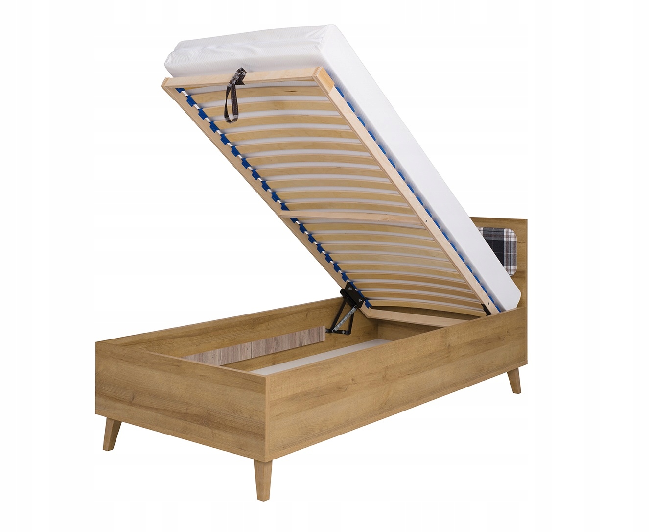 - Ліжко з контейнером для постільної білизни, який автоматично відкривається вгору
