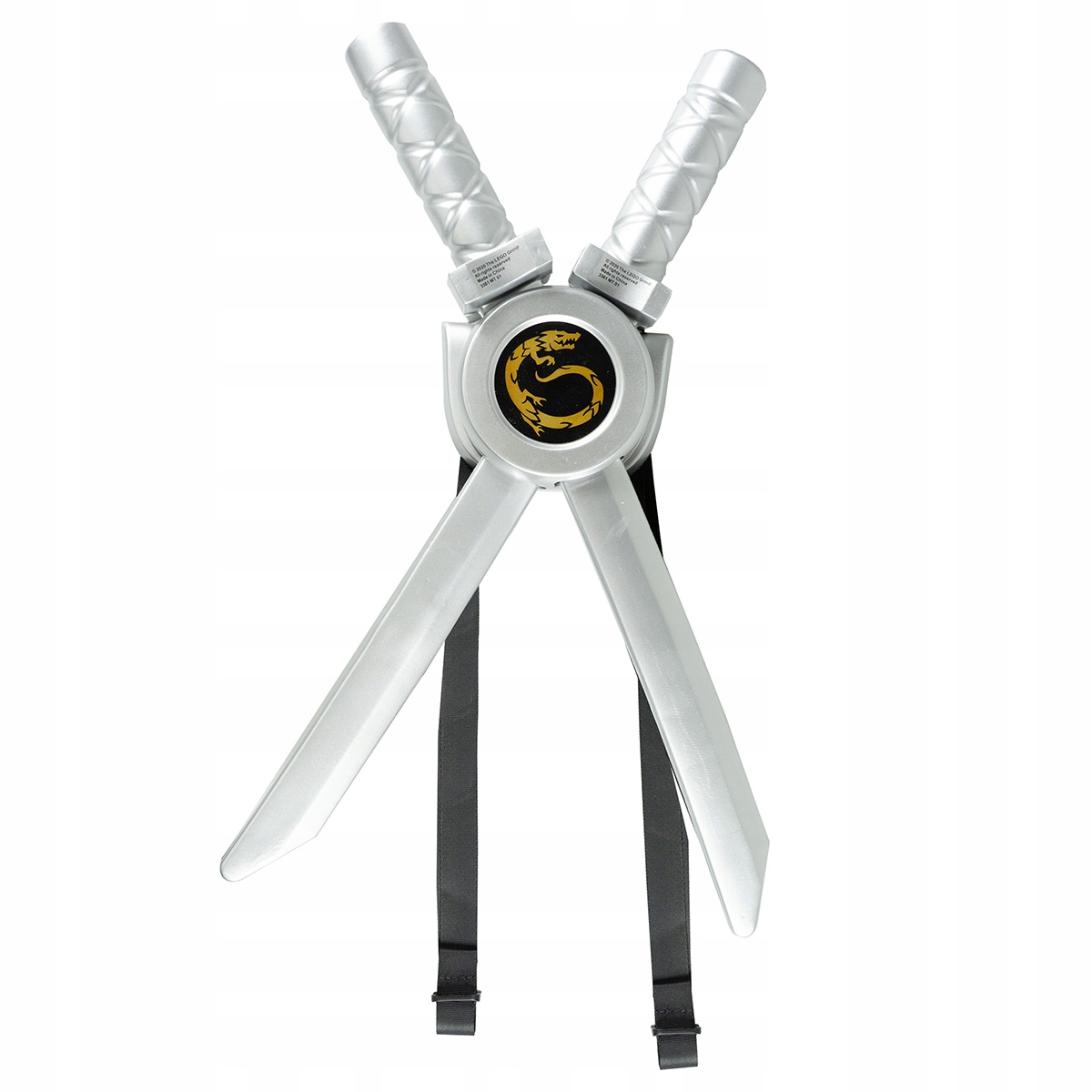 Набір із двох срібних мечів ніндзяго, виготовлених із пластику. Можливість носити мечі на спині. У комплект входить кобура-підтяжка, в яку можна помістити два мечі. Оригінальний ліцензійний продукт. Елемент костюма Ніндзяго або окремий аксесуар для карнавальних ігор, костюмованих вечірок, днів народжень.
