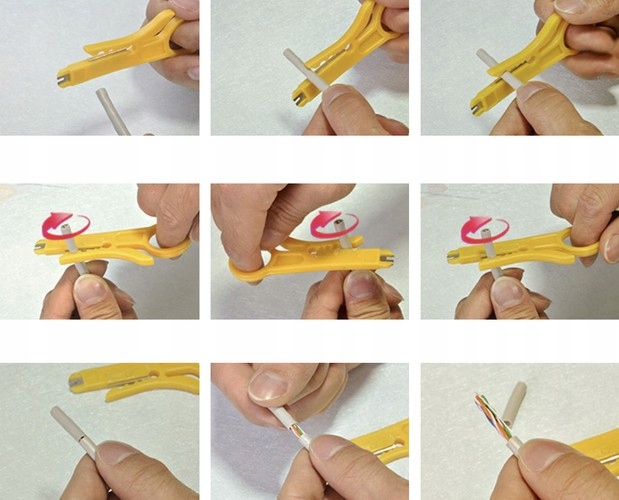 - ОБЖИМНИЙ ІНСТРУМЕНТ -призначений для модульних типів вилок: 8P8C/RJ45, 6P6C/RJ12, 6P4C/RJ11. Виготовлений із загартованої сталі. Прилад оснащений 2 ножами - обрізки і зняття ізоляції. Змінні леза дозволяють використовувати кримпер багато років