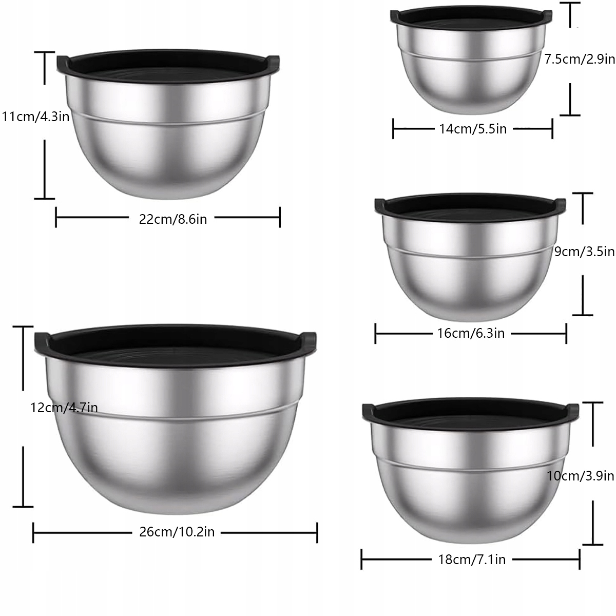 Набір із 5 кухонних мисок з нержавіючої сталі: