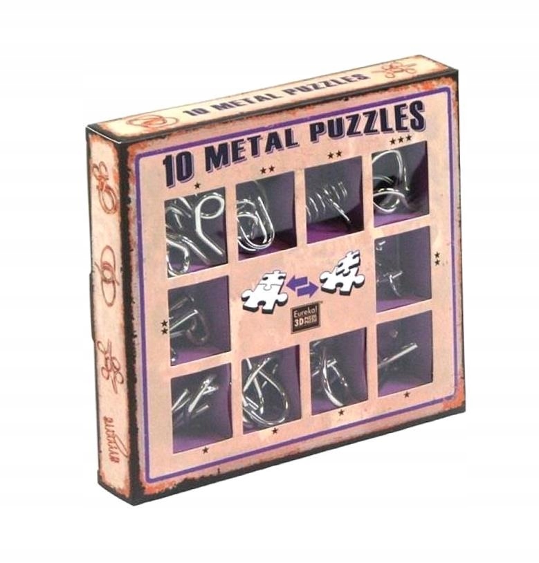 Представлений набір - справжній раритет для любителів головоломок. У набір входить 10 головоломок з рівнями: 1/4, 2/4 і 3/4. Eureka 3D Puzzle є авторитетним виробником головоломок у Європі. Різноманітний асортимент продукції, постійна увага до високої якості виготовлення та велика турбота про естетику та інтелектуальну цінність пропонованої продукції заслужили визнання компанії в усьому світі. Всі представлені головоломки чудово працюють у різних групах. Вони розважають, навчають, змушують думати та дають волю творчій уяві. Вони дозволяють людям різного віку знайти «спільну мову» і стають початком великого захоплення, часто об’єднуючого цілі родини навколо спільного хобі. Серед продукції «Еврика» кожен знайде щось для себе! Подивіться, чи зможете ви розгадати дивовижні головоломки від бельгійської компанії Eureka. А може, у вас є вроджена здатність вирішувати логічні завдання? Ви вирішуєте їх швидше за інших? Ми пропонуємо вам ознайомитися з надзвичайно винахідливими та дуже добре складеними головоломками, вирішення яких подарує вам години фантастичного задоволення. У нашій пропозиції є логічні головоломки для людей різного віку. Ми гарантуємо великий інтерес та чудове задоволення. Зробіть комусь подарунок, який спонукає до роздумів і є справжнім викликом! Випробуйте свою хитрість і розум! Пам'ятайте! Шукайте рішення без застосування сили, щоб не пошкодити головоломку.