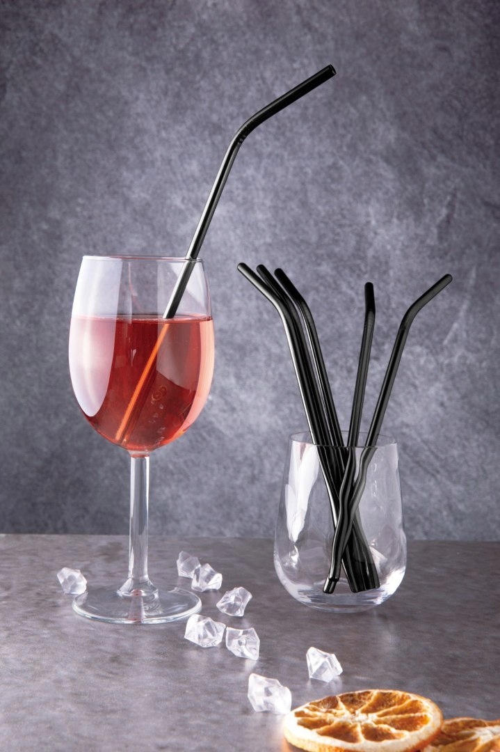 Набір містить 6 зігнутих чорних соломинок.