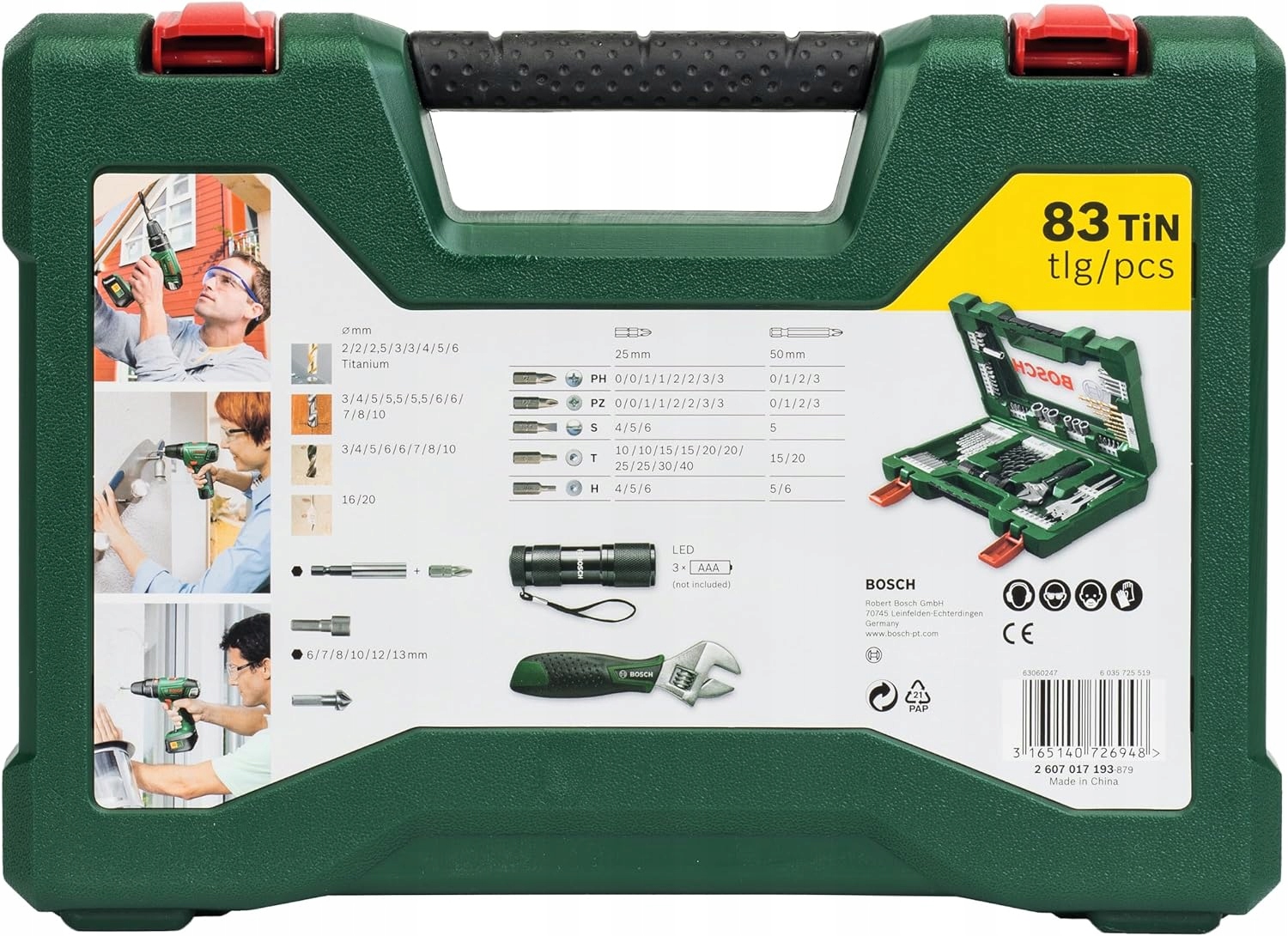 ➡ 83 Частковий титановий титановий Bosch, встановлений у пластиковій валізі.