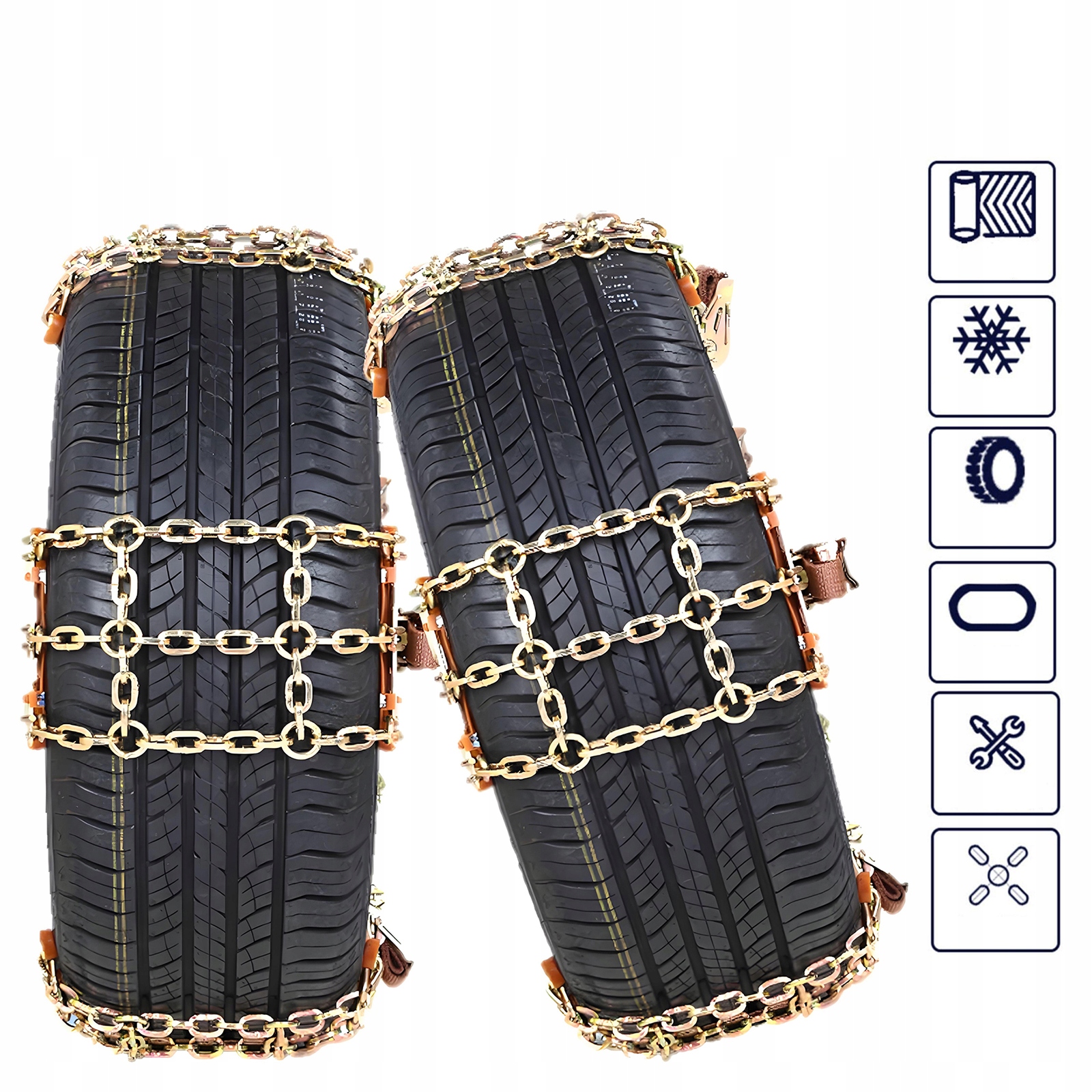 Характеристики: універсальний, цільний, автоматичний замок, простий у встановленні. Перед використанням ланцюг необхідно встановити на шини. Підходить для крижаних, засніжених, піщаних і брудних доріг тощо, ідеальний вибір для складних дорожніх умов.