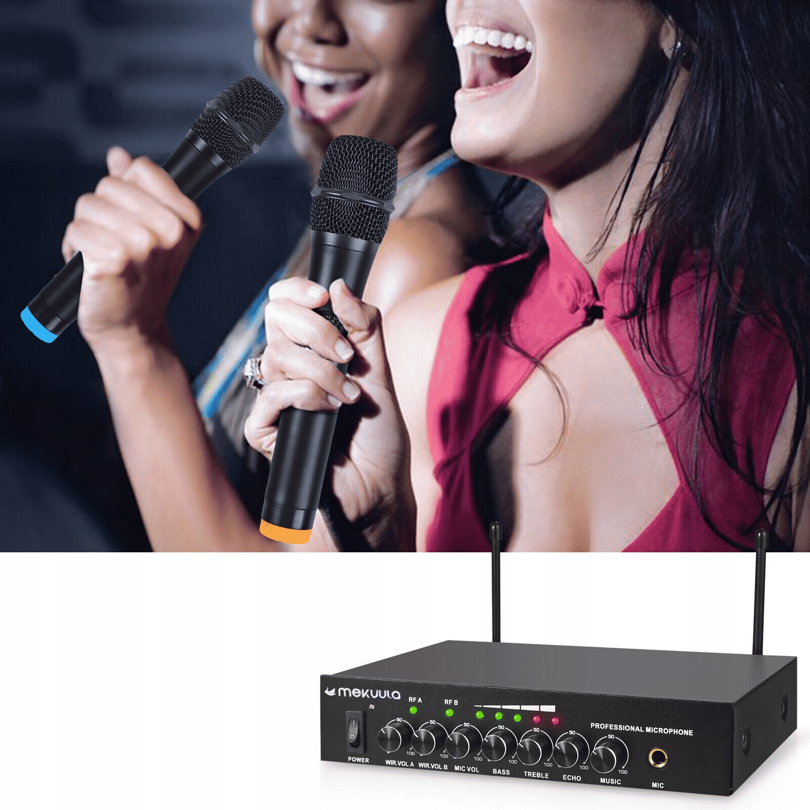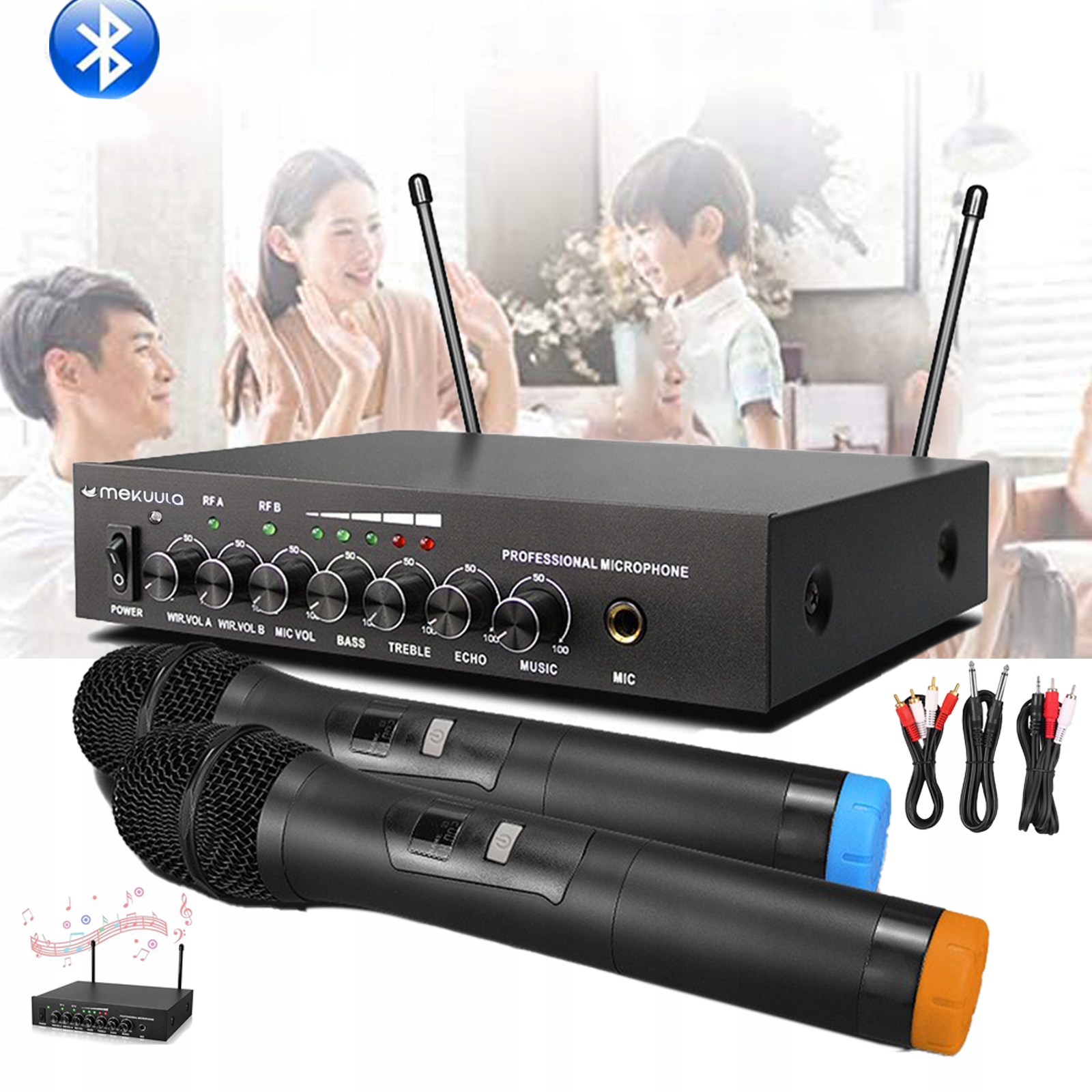 ?Підходить для багатьох програм? Бездротовий мікрофон із сильним відлунням і Bluetooth, УВЧ бездротова подвійна мікрофонна система для караоке, діджеїв, співу, церкви, весілля, динаміків, підсилювачів, звукових систем