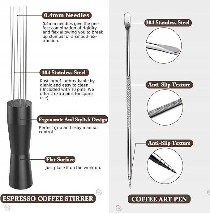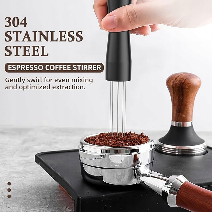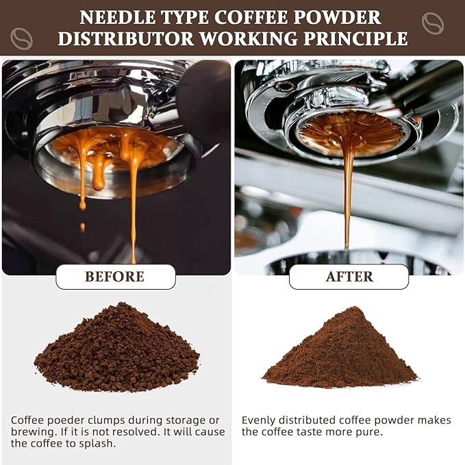 ☕☕☕Кавова мішалка робить каву м'якою і в той же час легко вирівнює каву в портафільтрі. Таким чином, перемішування також набагато правильніше і традиційніше.