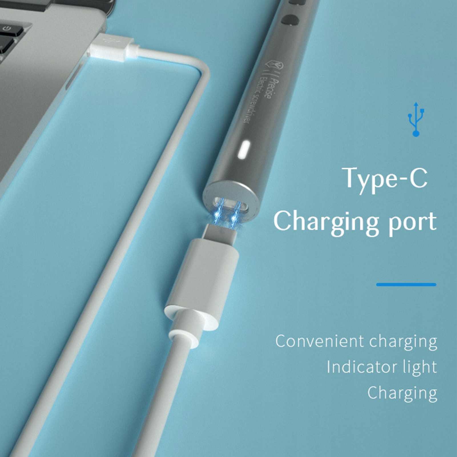 5. Джерело живлення: портативна викрутка, оснащена літій-іонним акумулятором ємністю 350 мАг, дизайн порту USB C, який зручно заряджати в будь-який час