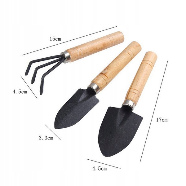 Набір міні садових інструментів - 3 елементи - дерев'яні ручки