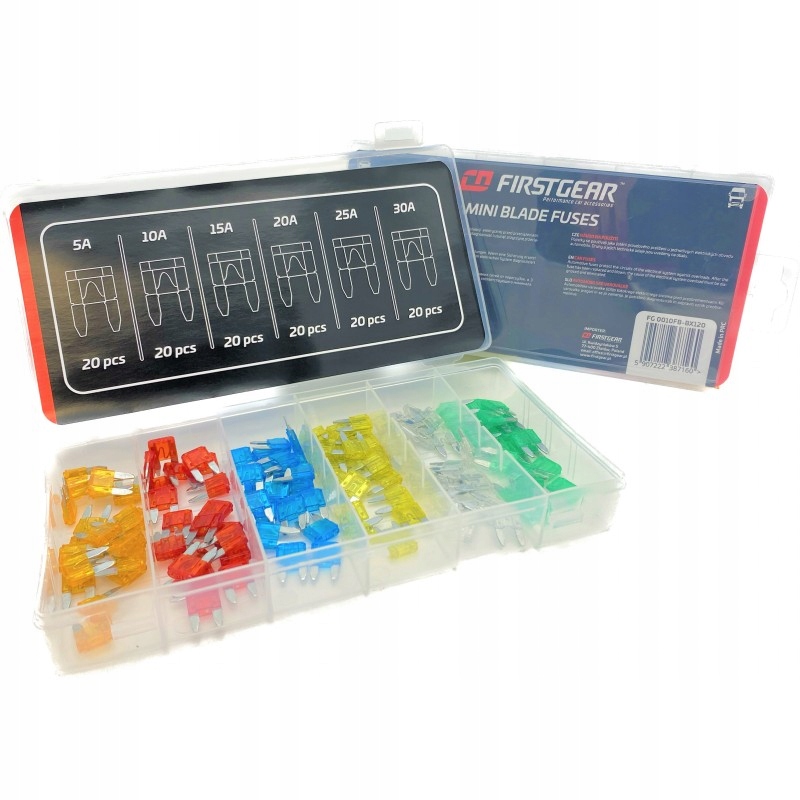 Набір пластинчастих автомобільних запобіжників MINI 120 шт фірми FirstGear в органайзері - це комплексне рішення для кожного водія, який хоче бути впевненим, що в разі потреби мати доступ до відповідного запобіжника.