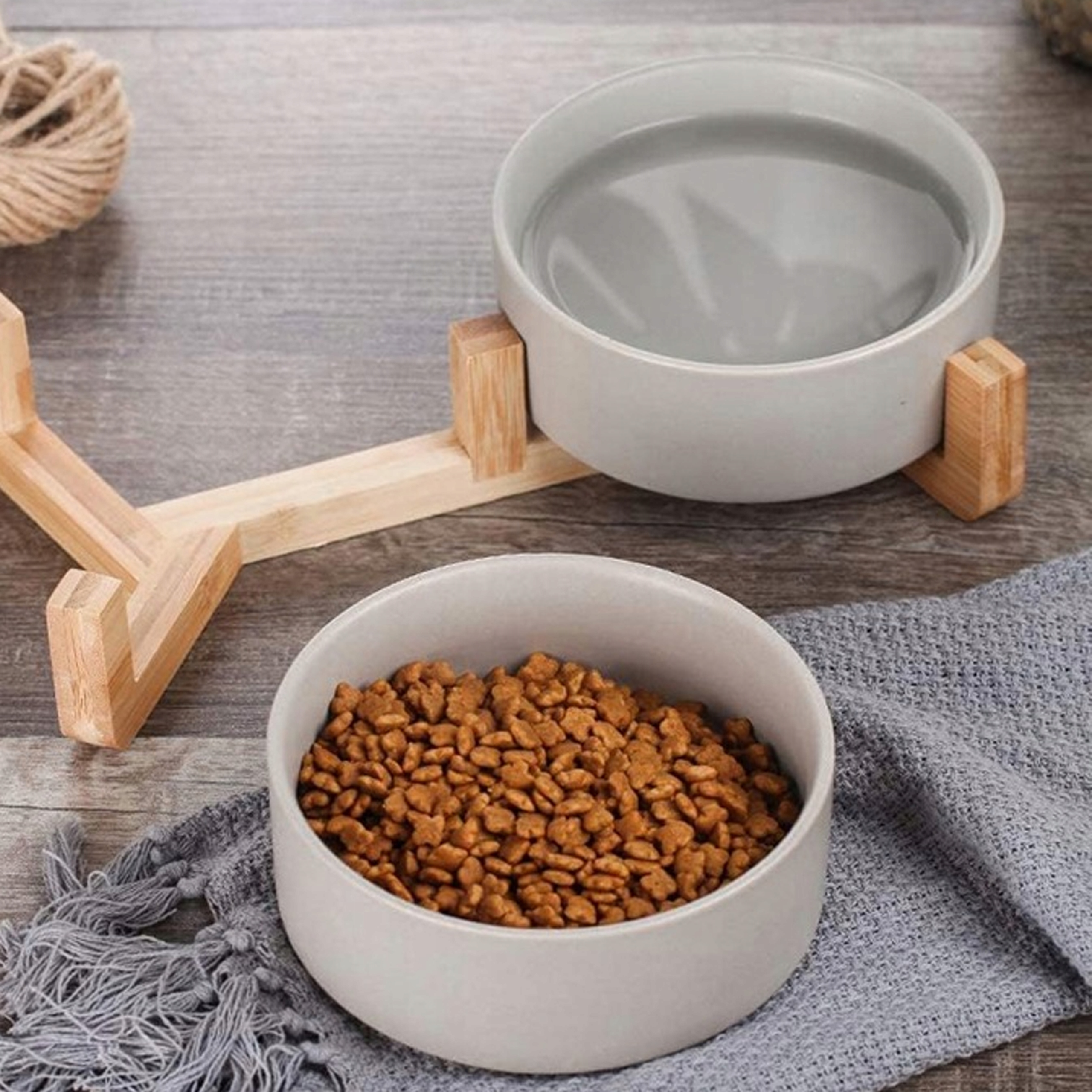 ✔️ Дерев'яна підставка запобігає ковзанню мисок.