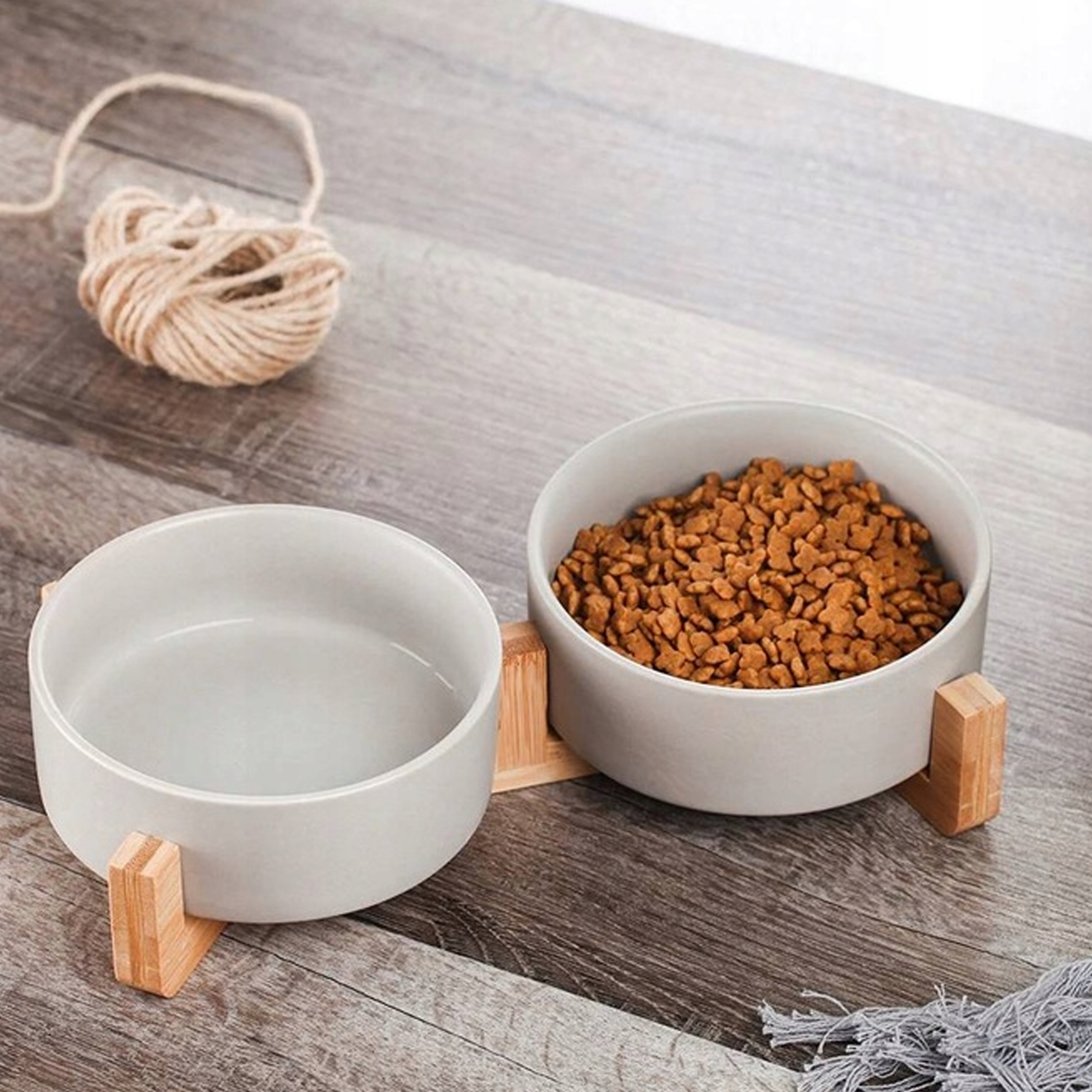 ✔️ 2 керамічні чаші, розміщені на стійкій основі з натурального дерева, не містять свинцю та кадмію.