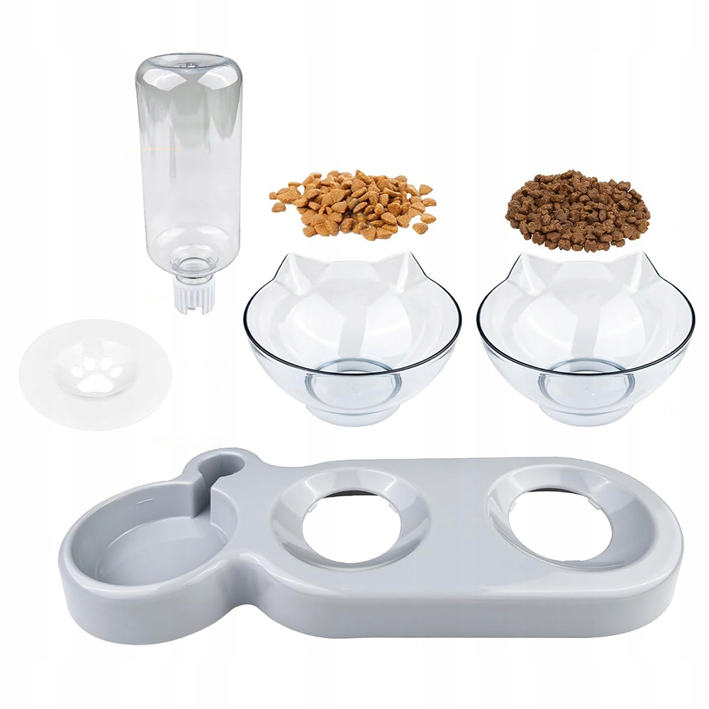 🏡 Годівниця з 2 мисками 200 мл, пляшкою для води, кут нахилу 15°, можна мити в посудомийній машині, для котів і маленьких собак ❗❗❗