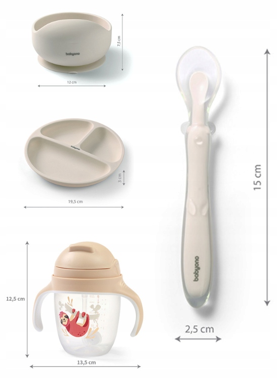 силіконова чаша з присоскою не тільки тримає стіл стабільним, але й підтримує розширення дієти , що дозволяє дитині відкривати нові смаки. ергономічна форма та закруглені краї тарілки допомагають розвинути рухові навички, а три відділення дозволяють розділити їжу. кухоль не -розсилення з напруженою соломою та щільним закриттям є гарантією безпеки без розливу, а його профілеровані ручки забезпечують комфортне утримання. М'яка силіконова чайна ложка делікатна для ясен і підтримує навчання незалежної їжі, адаптуючись до маленьких рук дитини. Ціле доповнюється сучасним дизайном , який буде радувати як дітей, так і батьків.