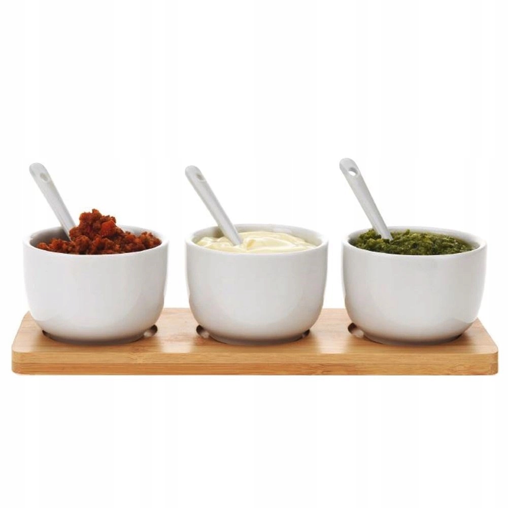 ⭐ У наборі: 3x миска 90 мл (6,5 x 6,5 x 5 см), 3x чайні ложки (довжина 10 см), 1x бамбукова дошка (21 x 7,5 см)
