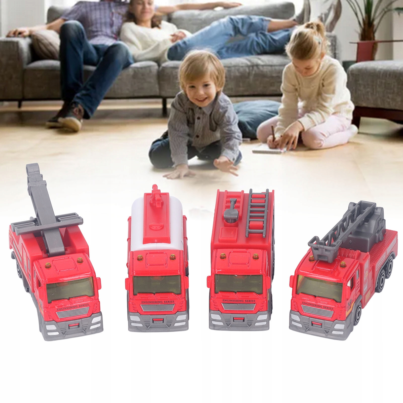 4 PCS 1:32 Набір пожежних вантажівок високого моделювання автомобіля з приводом з приводом назад Подарунок іграшки Подарунок для дітей