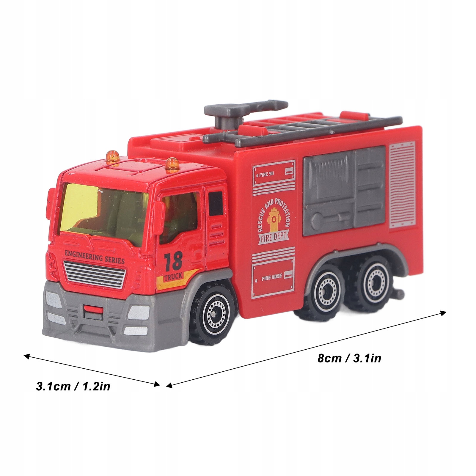 2. Шкала 1:32: З надзвичайною увагою до деталей ця іграшкова пожежна машина була зведена до співвідношення 1:32, щоб діти могли переживати та вивчати функції та функції реальних пожежних вантажівок реалістичним та захоплюючим способом.