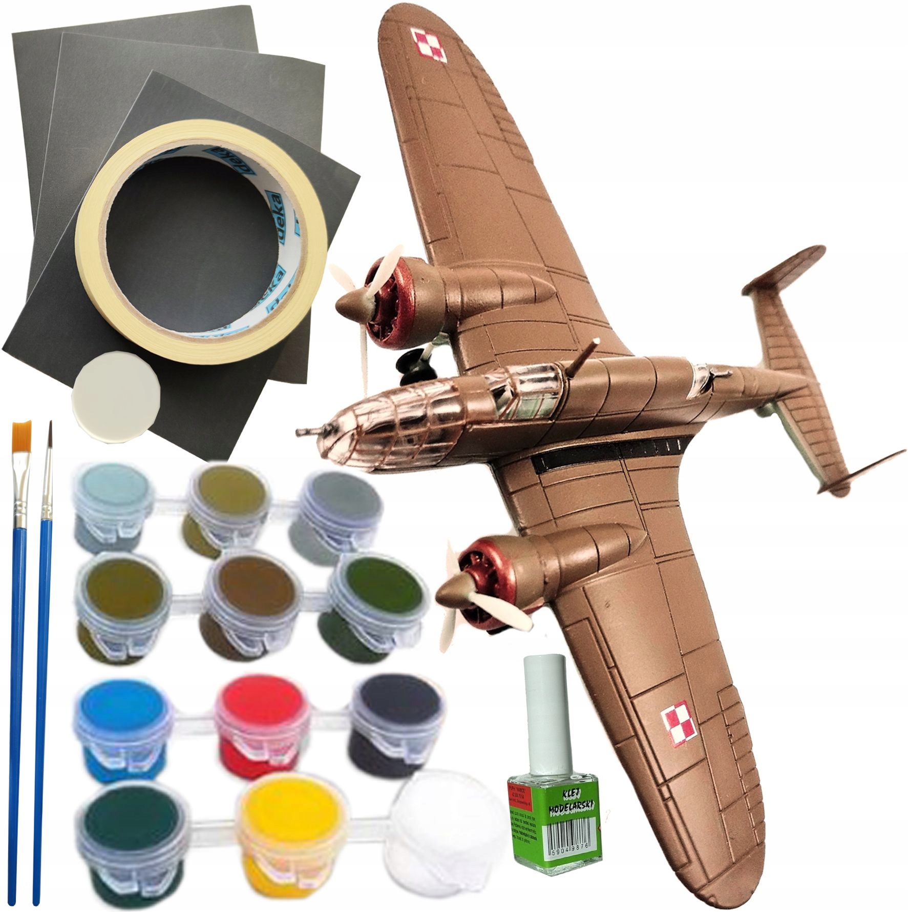 Модель літака MOOSE для склеювання + ФАРБИ, КЛЕЙ, ПЕНЗЛИКИ, ШПАТКУВКА, МОДЕЛЮВАЛЬНА СТРІЧКА для маскування, НАЖІДАЧНИЙ ПАПІР 400, 600 і 800