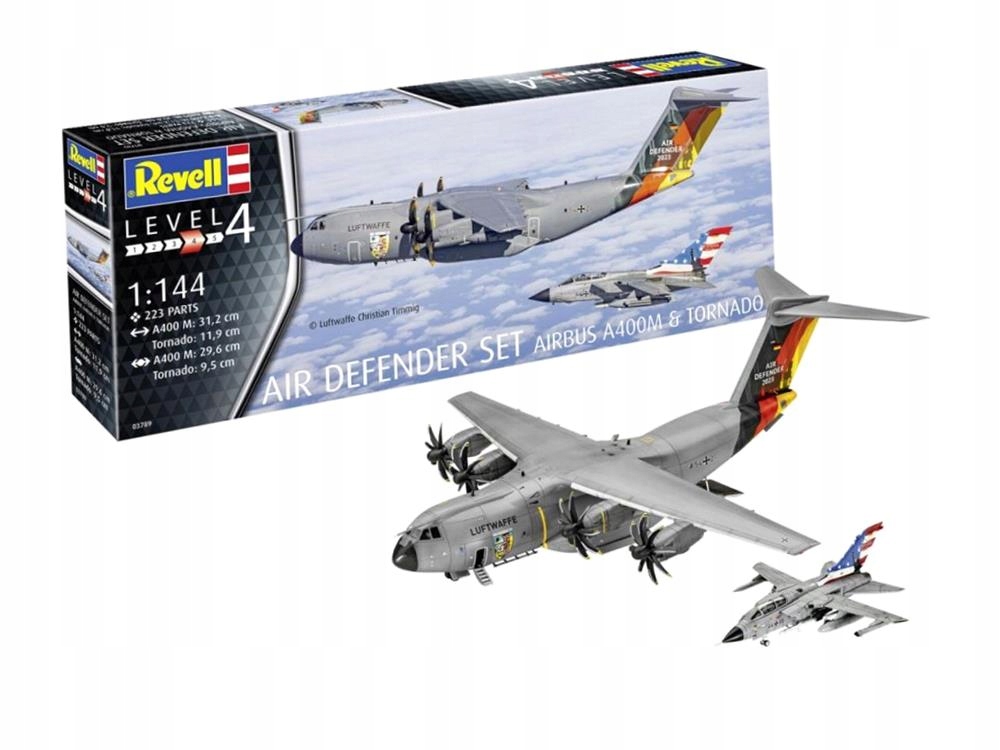 A400M і Tornado. У червні 2023 року 25 країн-членів НАТО зібралися над Європою для проведення найбільших навчань з повітряних операцій з часів існування НАТО, ініційованих Бундесвером. У цих історичних маневрах взяли участь понад 10 тисяч солдатів і 250 літаків, у тому числі 23 різних типів. Модельний набір Air Defender віддає данину поваги літакам A400M і Tornado, які відіграли ключову роль у цих навчаннях, і запрошує модельєрів стати частиною цієї захоплюючої історії.