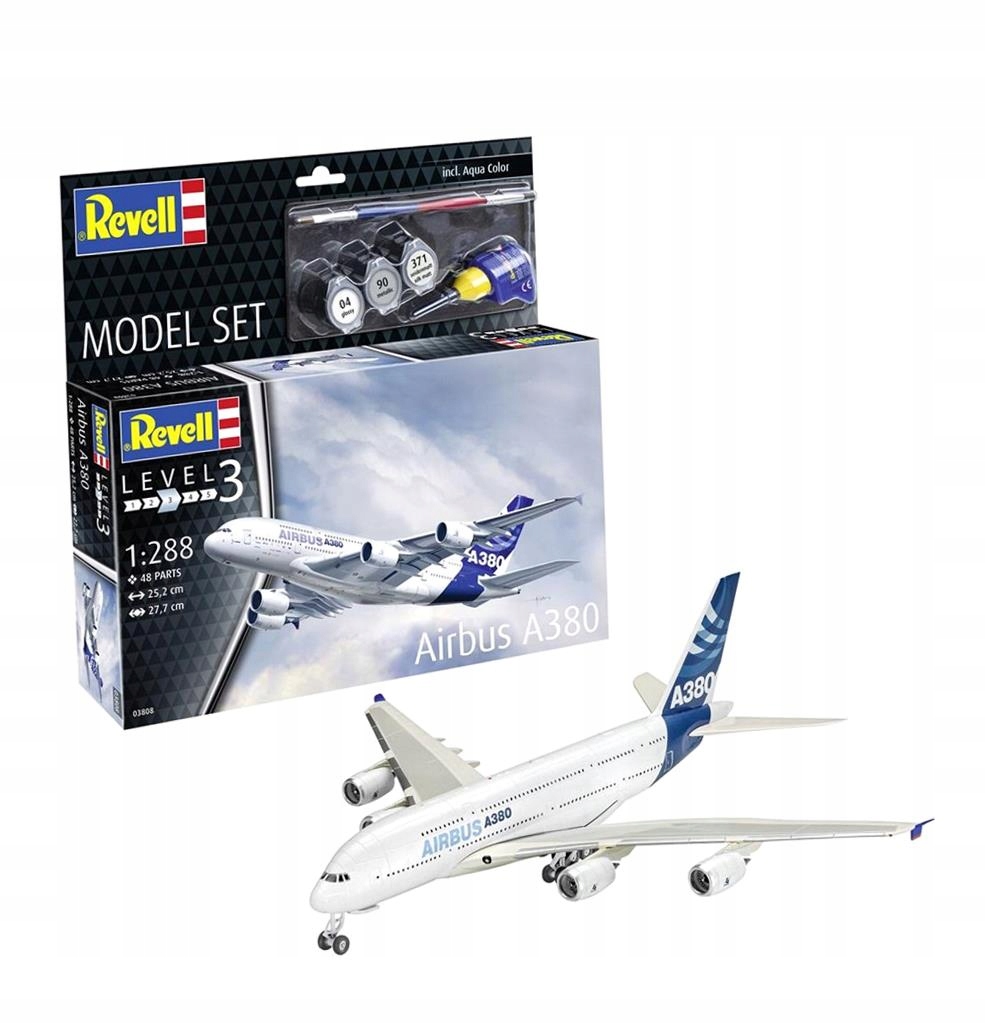 Набір для ліплення з аксесуарами (основні фарби, пензлик, клей). Airbus A380-800 - це віха в історії цивільної авіації - як перший двоповерховий авіалайнер, він революціонізував можливості подорожей. З нашим набором для моделювання ви можете відтворити та пережити частину цієї захоплюючої історії вдома. Ця модель віддає належне цьому піонеру цивільної авіації і повинна бути в кожній колекції. Оживіть частину історії авіації з кожною частиною, яку ви зібрали! Набір пластикових моделей Revell (REV-63808). Специфікація Каталожний номер: REV-63808 Виробник: Revell Розміри: 300x309x45 Довжина: 252 мм Ширина: 278 мм Висота: 86 мм Масштаб: 1:288 Кількість елементів: 47 Інструкція: так Вікова група: 10+