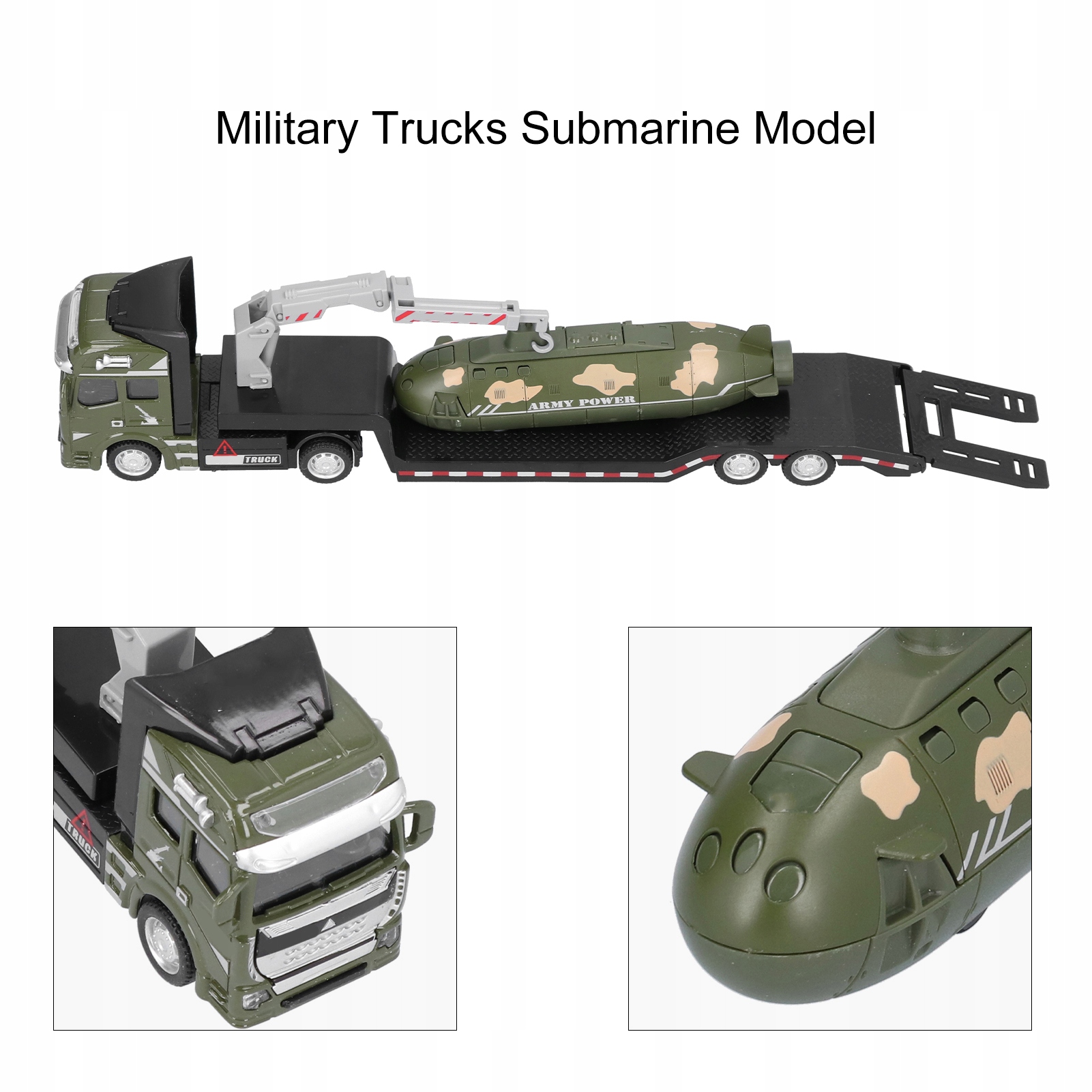 1. Іграшковий набір підводної військової вантажівки, виготовлений зі сплаву, є міцним і має заклепки для деформації.