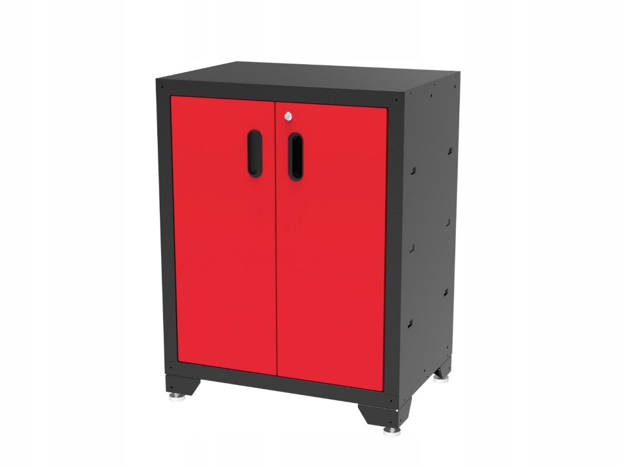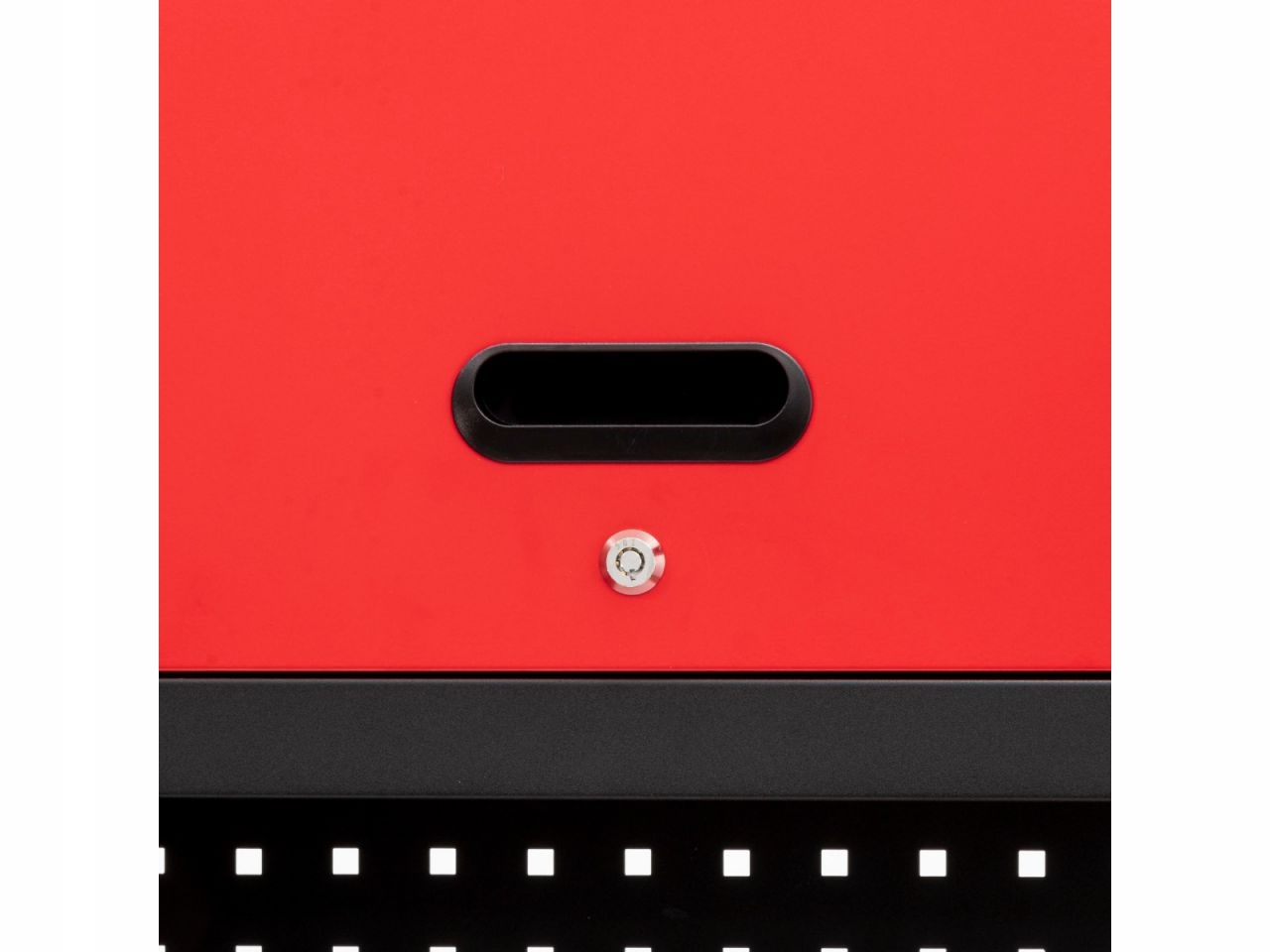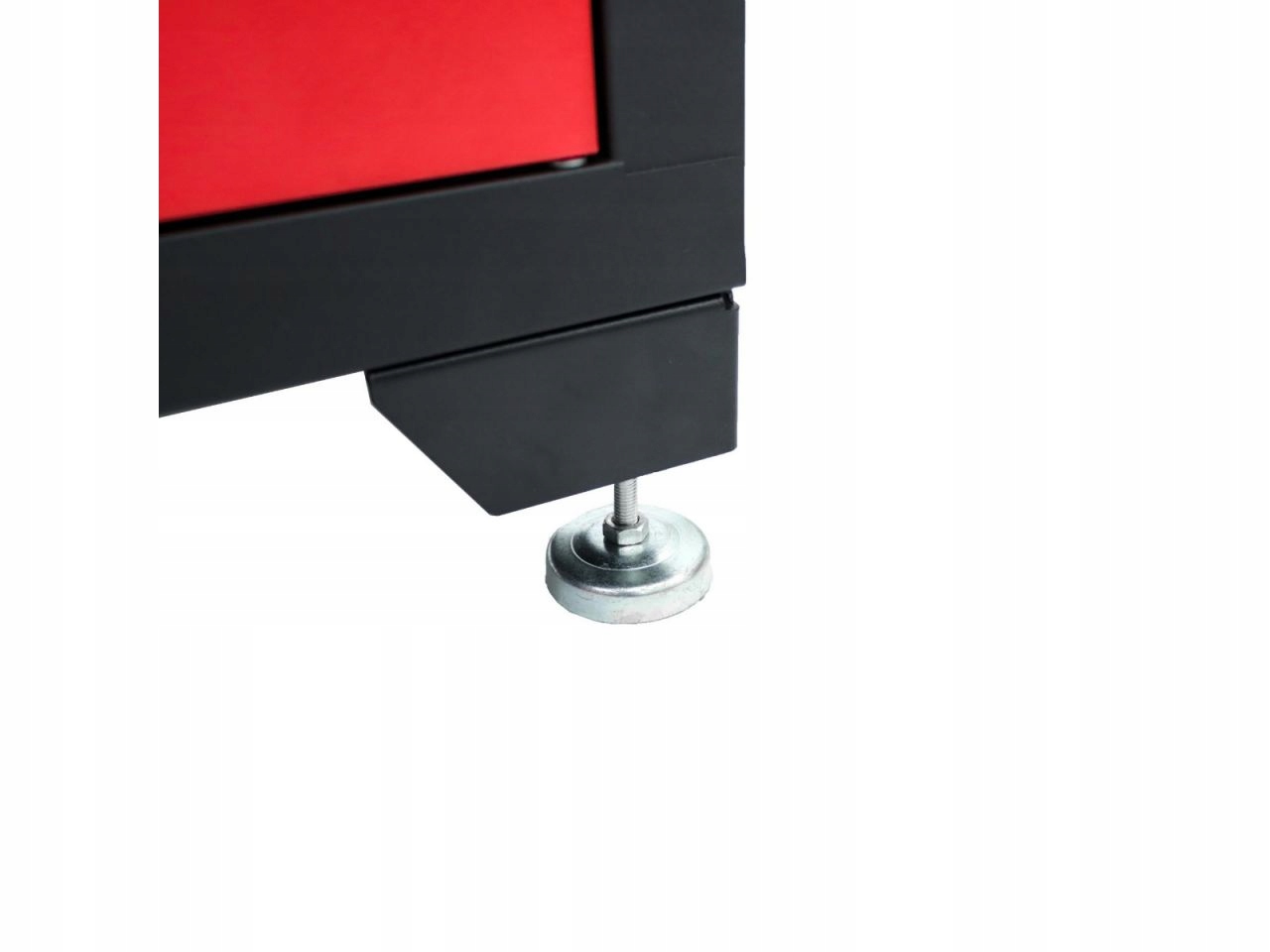 Нижня шафа з 6 ящиками. Загальні розміри корпусу 65 x 43 x 80 см. 4 шухляди менші і мають розміри 54 x 38 x 8 см. Два великих ящика мають розміри 54 x 38 x 16,5 см. Ящики замикаються по центру, тож ви можете безпечно зберігати в них інструменти.