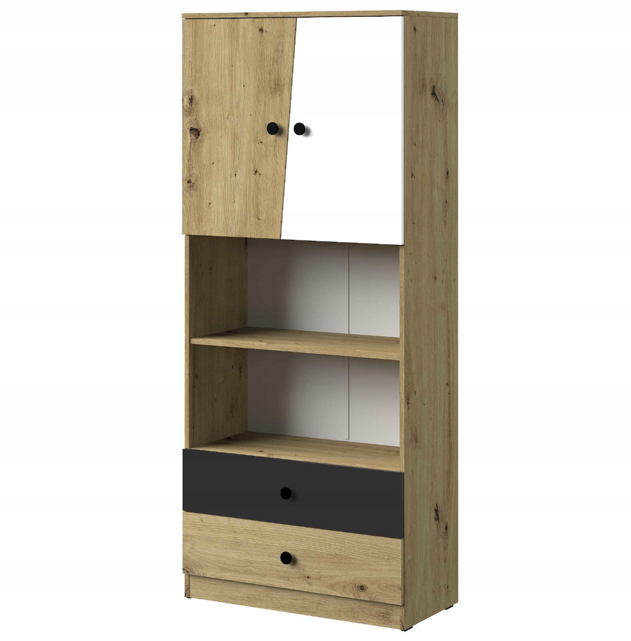 - Nero N01 – дводверна шафа 80 з рейкою, полицями та ящиками – 80x190x50